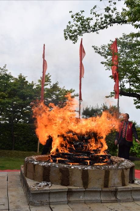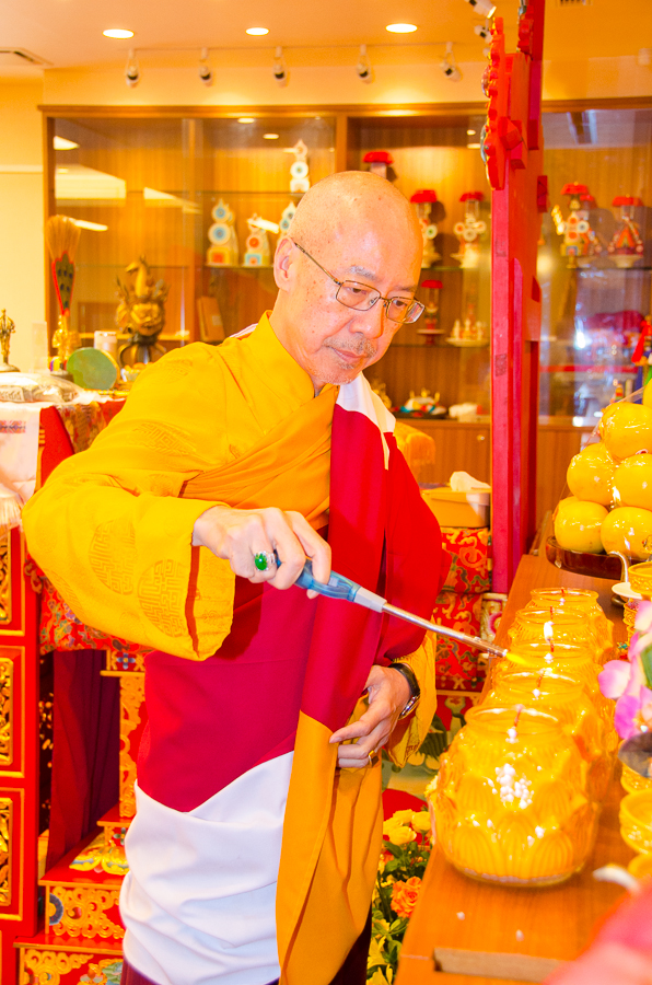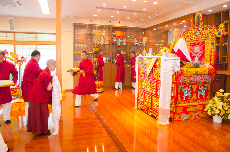 His Eminence Rinchen Dorjee Rinpoche presided over the Memorial Puja Commemorating the Sixth Anniversary of the Consecration of the Glorious Jewel Buddhist Center, Kyoto and the auspicious Acalanatha Fire Puja at the Glorious Jewel Buddhist Center in Kyoto, Japan. Those in attendance included 28 believers from Japan, India, and Taiwan, as well as 186 Japanese and Taiwanese disciples, for a total of 214 people. The puja came to an auspicious and perfect completion.