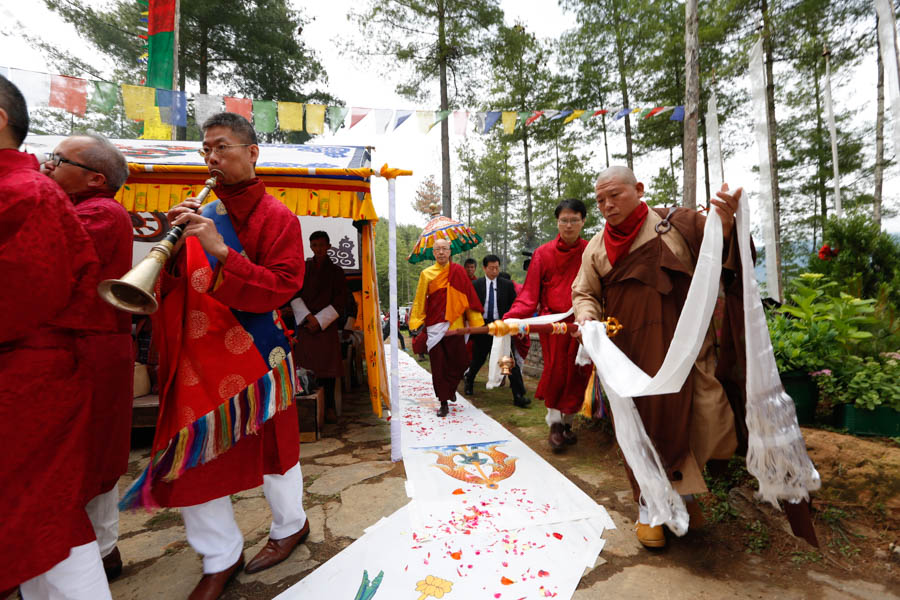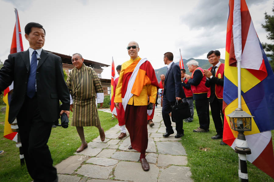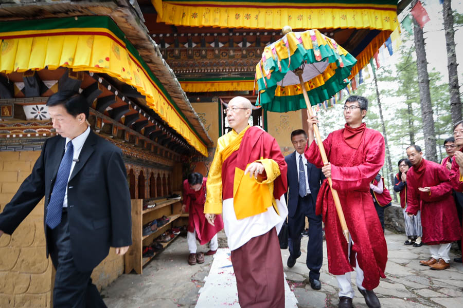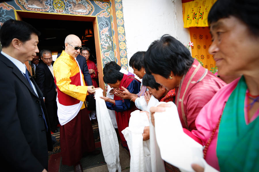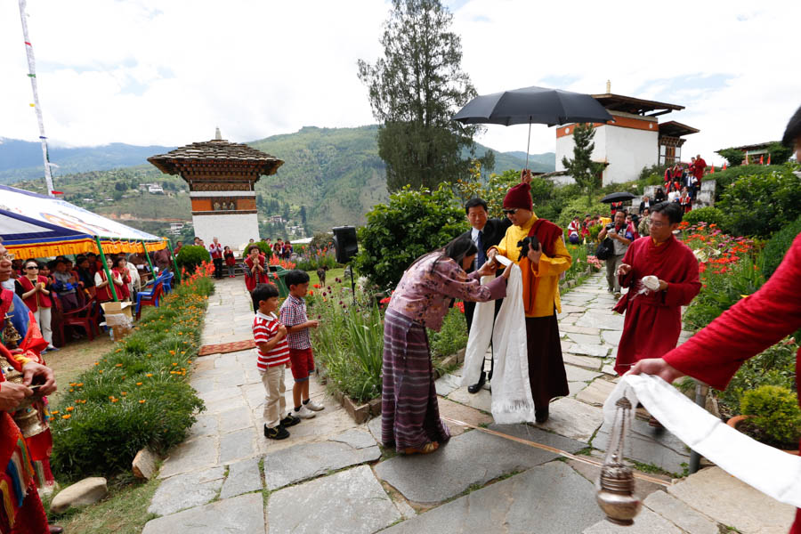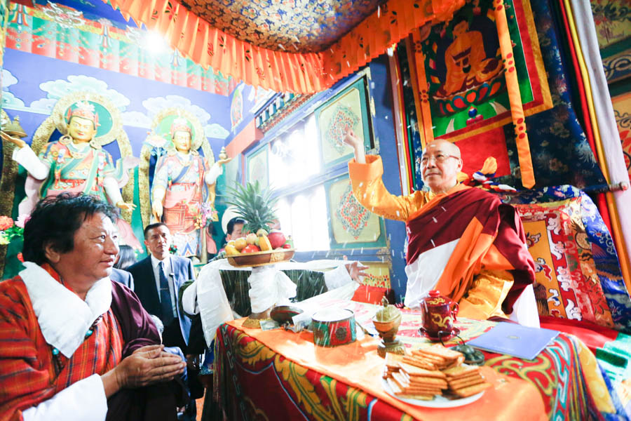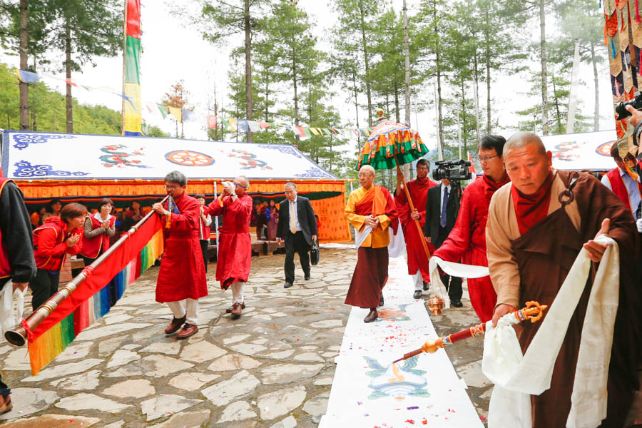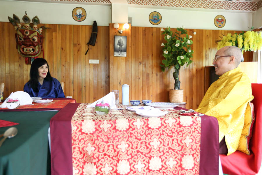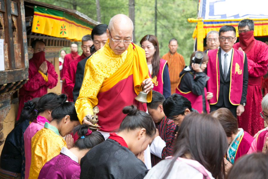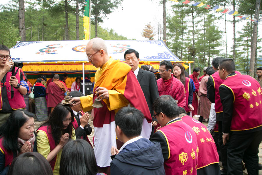 “This is my first time in Bhutan. I thank the Dorji family for inviting me here to preside over the pujas. Today, the first day of the pujas, I will perform the Trikaya Offering Dharma. Bhutan is a very pretty, serene kingdom, and that should be very favorable for Buddhist cultivation. Those of us from other countries tend to be very busy with multiple engagements, so making a trip to Bhutan is not all that easy. I hope that this visit will have a good effect on this nation, the unity of Buddhism, and the Bhutanese people.