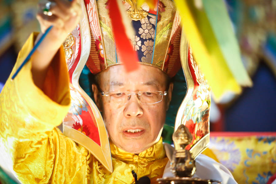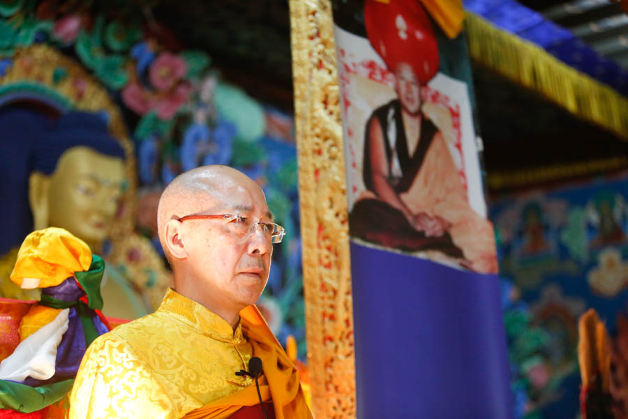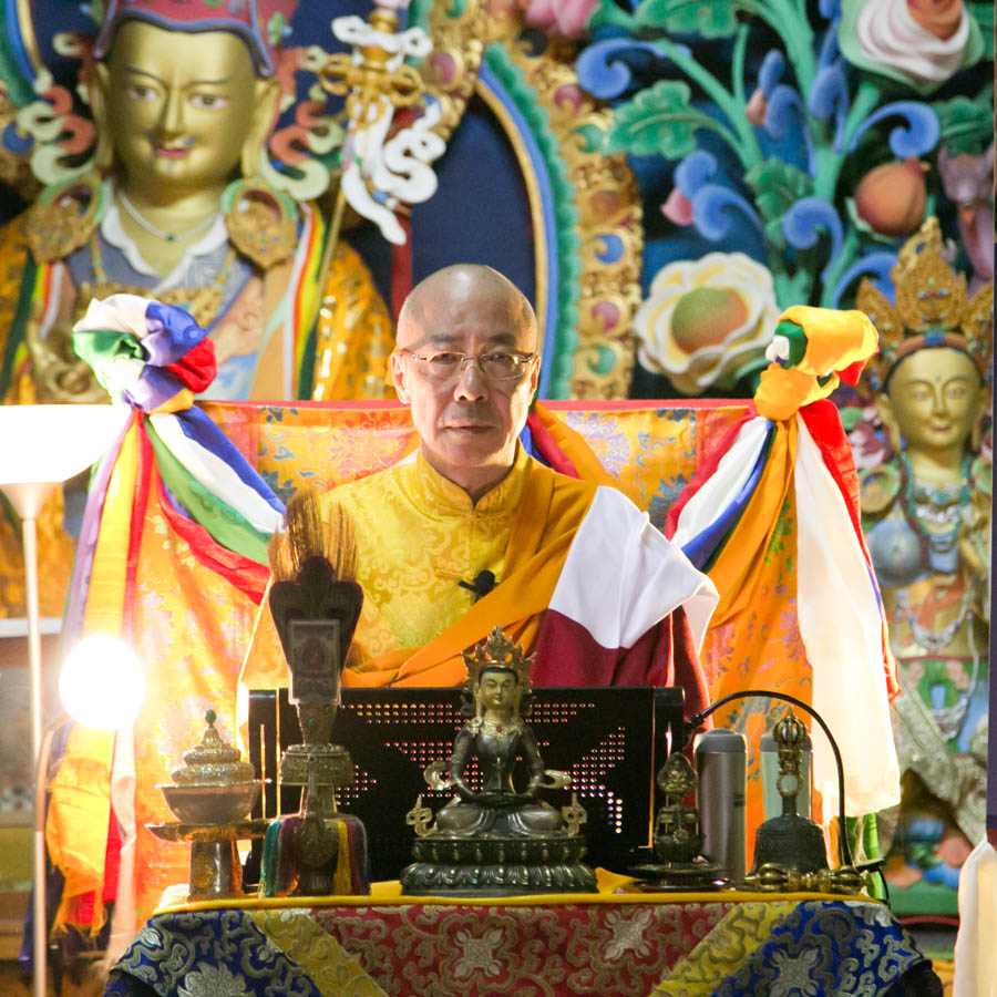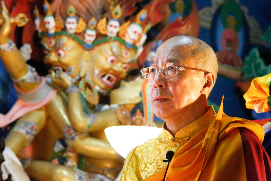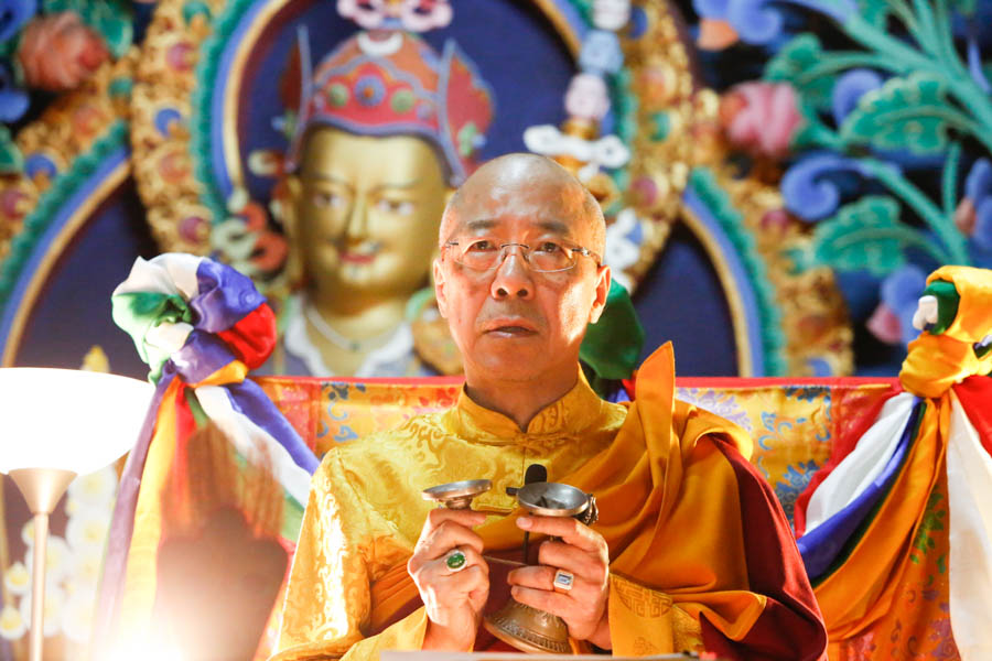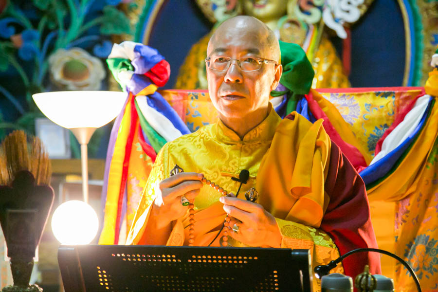 “If you have come to participate in today’s puja with a compassionate, repentant mindset, a resolve to become liberated from reincarnation in this lifetime, and respect for the Three Jewels, then this empowerment will certainly be of use to you. What does ‘empowerment’ mean? It is based on an ancient Indian tradition. Back then, whenever a king wanted to pass his crown on to a prince to become the country’s future monarch, a precious, treasured vase filled with purified water would be used. The water was then poured from the top of the prince’s head, indicating that the lineage had been passed on to him. Thus, ‘empowerment’ means that after you are empowered, the yidam has given you the authority to practice this Dharma. Someone is sure to ask, ‘So can I chant this mantra even if I’m not empowered?’ Of course you may, but you will not achieve attainment in it, because the yidam has not given you the authority to do so. It would be like a student wishing to go to school: He or she needs to register first, right? The teachers cannot begin to teach that student until they know who he or she is.