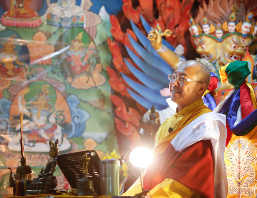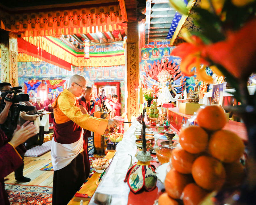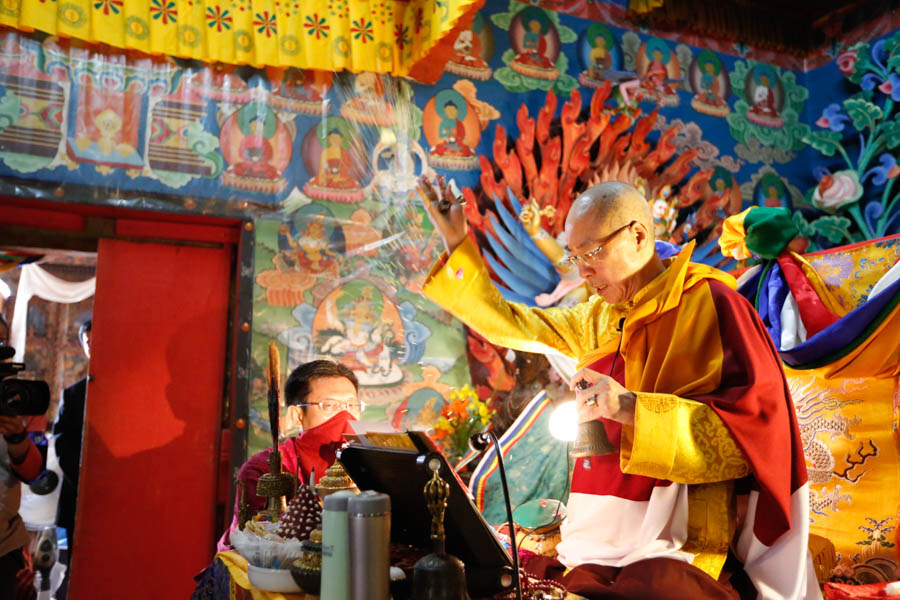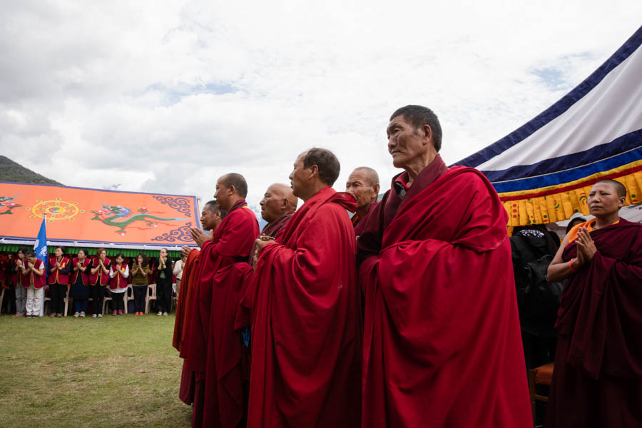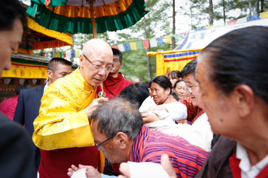 “Today’s puja has come to a perfect completion. I thank you all for your participation; without it, I would not have had the causal condition to benefit sentient beings. Therefore, today you have all taken part in a virtuous collective karma. I hope that the good that comes from it will continue to expand exponentially, benefiting even more sentient beings. It is also my hope that all monastics here will have sufficient resources for practicing and be able to achieve attainment in this lifetime. In addition, I hope all of Bhutan’s believers can live in harmony under the protection of the Buddhas, Bodhisattvas, gurus, and Dharma protectors, and that they can all be reborn in the Pure Land after this lifetime. Thank you, everyone.”