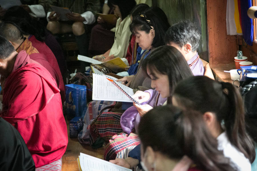 The seats outside the monastery were filled with Bhutanese believers and Glorious Jewel disciples, all participating in the puja together.