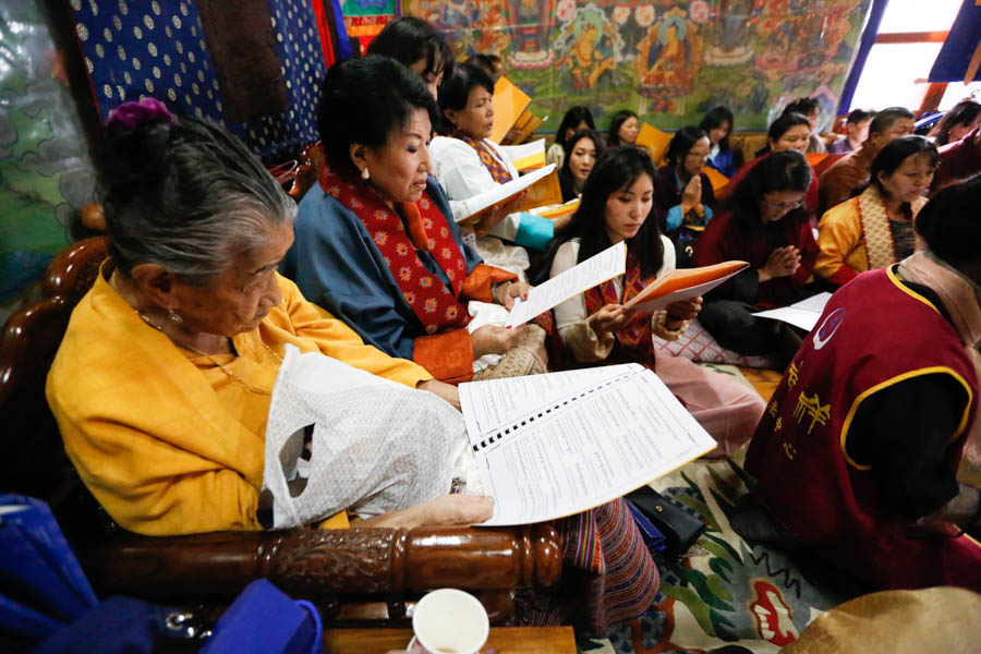 The Princess of Bhutan, Ashi Kesang Wangmo Wangchuck (center), attending the puja.