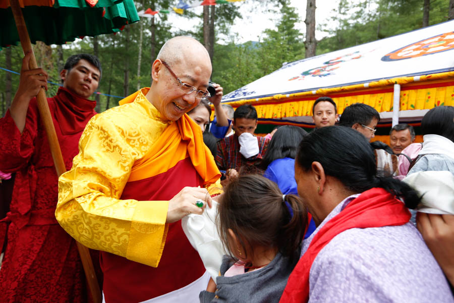His Eminence Rinchen Dorjee Rinpoche tirelessly bestowing blessings upon the Bhutanese believers.