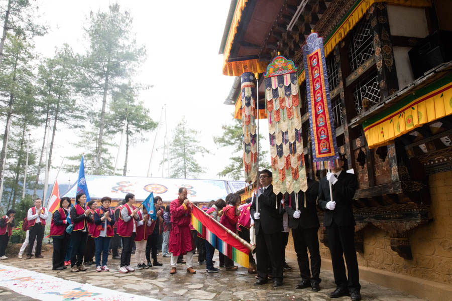As many as 331 people attended the puja, including Khenpo Namdol of the Drikung Kagyu Order, lamas and khenpos of Bhutan’s local Drukpa Kagyu Order, esteemed guests and believers from Bhutan, and disciples and honored guests from Taiwan. The esteemed guests attending the puja included 92-year-old Ms. Ashi Tessla Dorji, His Holiness the Drikung Kyabgon Chetsang’s aunt and wife of former Bhutanese Prime Minister Jigme Palden Dorji; the Princess of Bhutan, daughter of the third King of Bhutan and younger sister of the fourth King of Bhutan, also Chairwoman of the International Buddhist Association; Bhutanese Ambassador Tobgye S Dorji—also Chairman of the United Nations Conference on Trade and Development—and his wife; proprietor of the Gangtey Palace Hotel, which was converted from the palace of the third King of Bhutan; Mr. Dasho Sherub Tenzin, former Cabinet Secretary to the Royal Government of Bhutan; proprietor Aum Thinley Lham of Layrab Choling Monastery in Thimphu, capital city of Bhutan, as well as her daughter Miss Chencho; the Bhutanese delegate to Tibet and his daughter; former Chief Justice of Bhutan; a member of the Old Bumthang Dzong Bhutan royal family and first General Manager of Bhutan Airlines; founder of the Bhutan Association of Women Entrepreneurs; and members of the Dorji family, who invited Rinchen Dorjee Rinpoche to preside over the pujas in Bhutan.