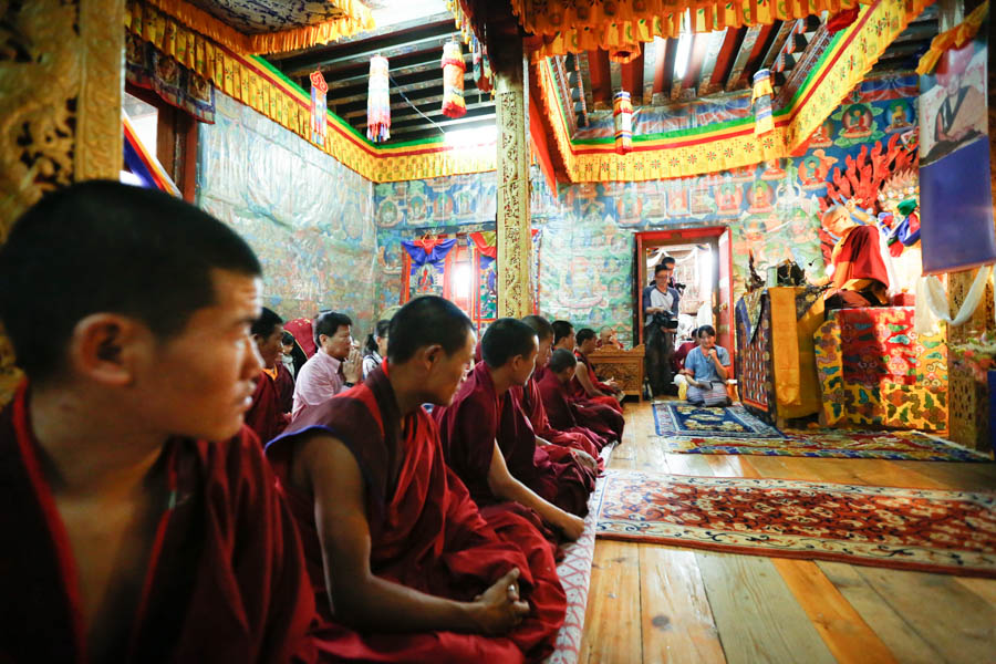 At 3:00 in the afternoon, in response to an invitation by the local nobility, Rinchen Dorjee Rinpoche proceeded to Zangto Pelri Lhakang Temple where he performed the Dharma.