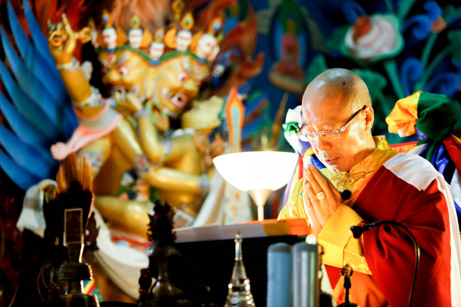 “You should repent for not wanting to participate in any more pujas. Your minds are clouded by fundamental darkness, whether due to your own actions or because you have told others to do as you do. For example, you snack during the puja while telling people that they should eat, too; you have fun playing with your cell phone and asking others to play with you; you wish to leave in the middle of the puja, so you try to get others to leave with you—for all such behavior, you should pray for the yidam’s forgiveness.