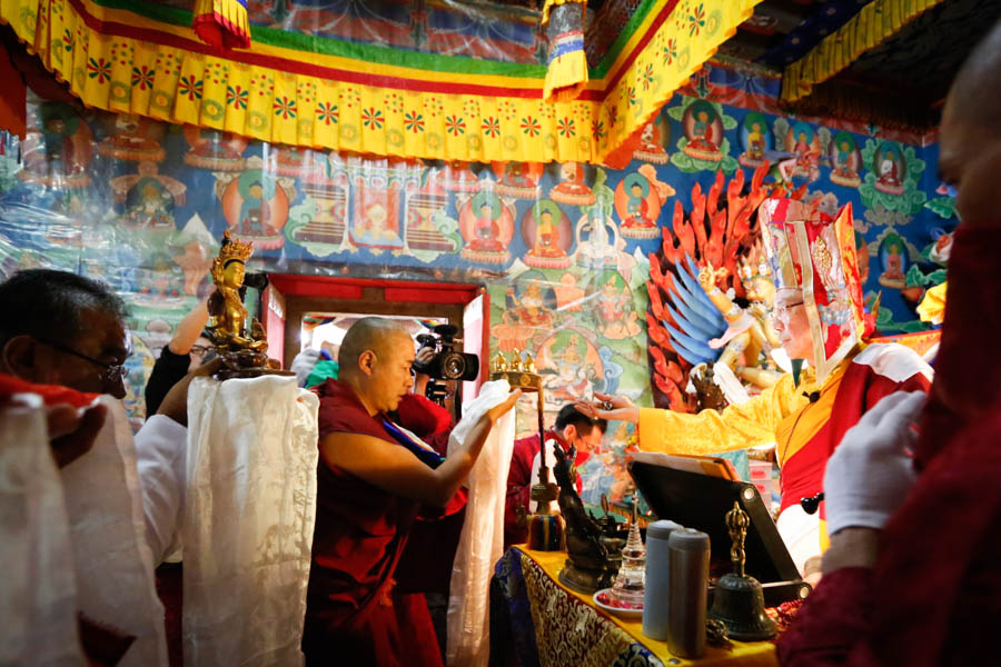 “Why have I chosen today to perform the Trikaya Offering Dharma? After Chukie showed me a photograph of the monastery’s yidams, I felt that this was a very good origination, because the yidams enshrined here are Amitabha and Padmasambhava.