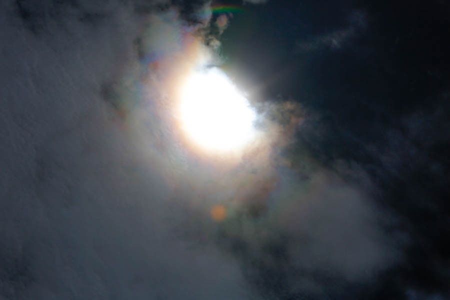 It had been hot and sunny that day, but as Rinchen Dorjee Rinpoche arrived at the location in which the Fire Offering was to be performed, an enormous halo appeared around the sun, radiating outward like iridescent pedals. Before the puja began, three large, black birds circled in the air above the venue, where they remained during the puja for a very long time.
