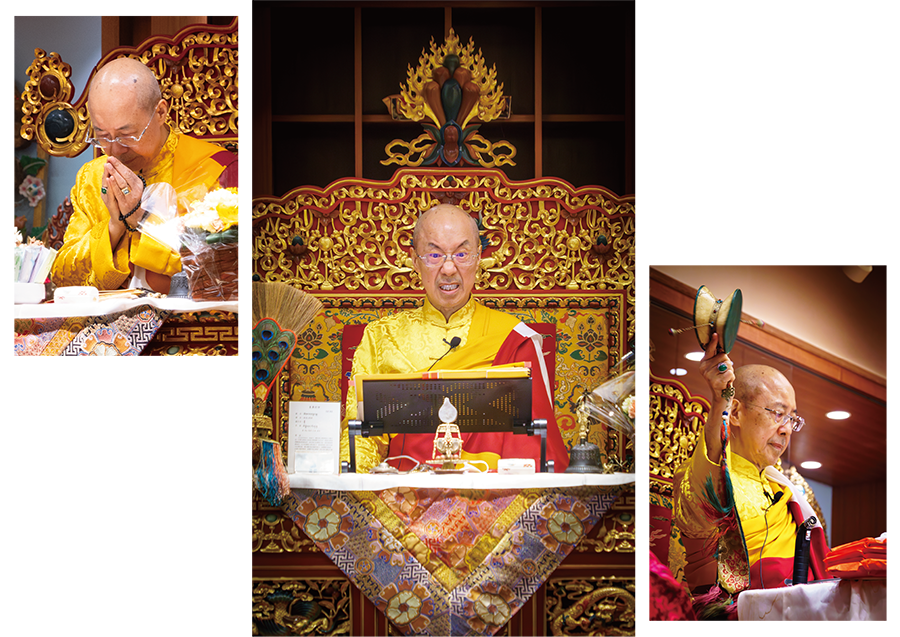 During the puja, Rinpoche’s earnest expounding was as enlightening as the anointment of the purest cream to the head; not only did Rinpoche dispel the misunderstanding that the public had about the Jambhala Dharma, he further inculcated that to make offerings and rejoice in the merit of others with a pure and clear heart are the foundations for accumulating good fortune. Especially since turbulent times lie ahead for the world, Rinpoche specially practiced the Dharma to bless and protect all so that through Jambhala’s powers, all may earn stable wealth and income, and peacefully get through difficult times. Rinpoche painstakingly urged the sentient beings to become vegetarian and not to kill anymore, and further expounded on the true meaning of a compassionate heart. Each and every word expounded by Rinpoche held extremely incomparably wondrous blessings, which guided Buddhists of the Dharma Decline Era onto the great Bodhi path of accumulating good fortune and surpassing suffering to attain joy. While Rinpoche was performing the Dharma, his sacred body emitted a brilliant golden light, and a wondrous and miraculous fragrance permeated throughout, as the assembly all felt the ground shake and their bodies grow warm, the blessings were incredibly, incomparably wondrous.