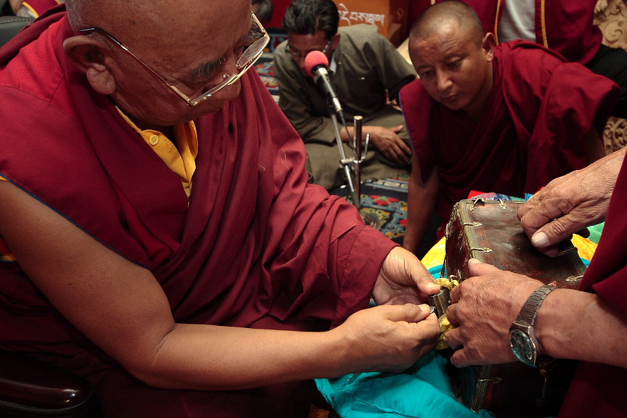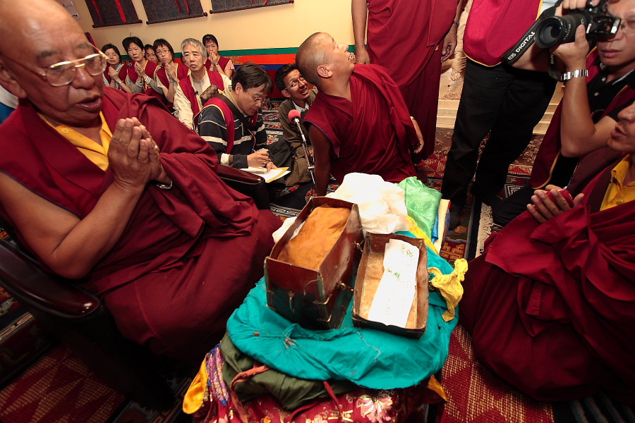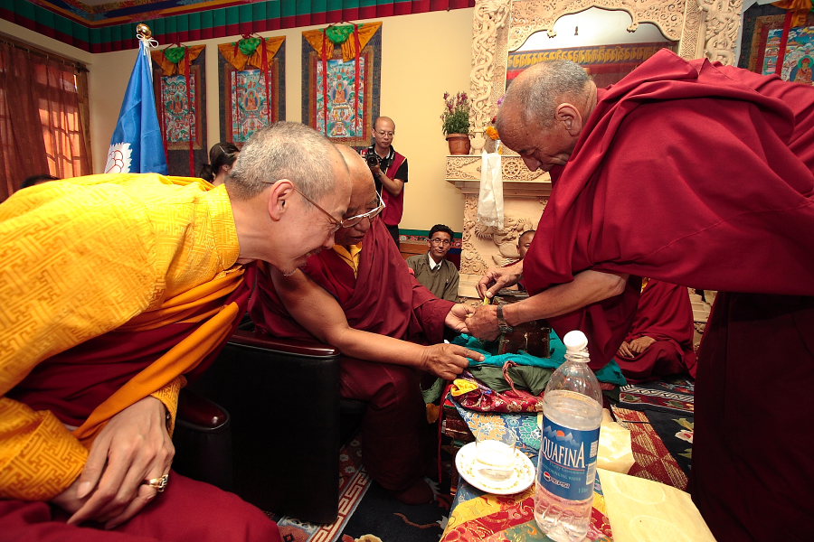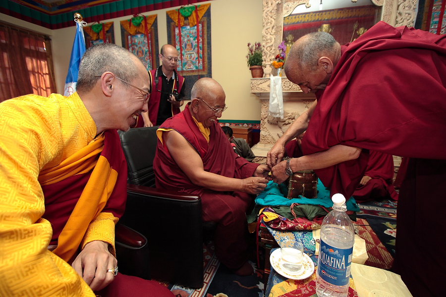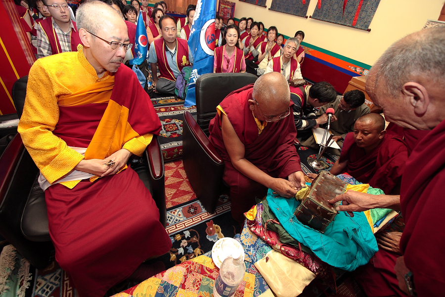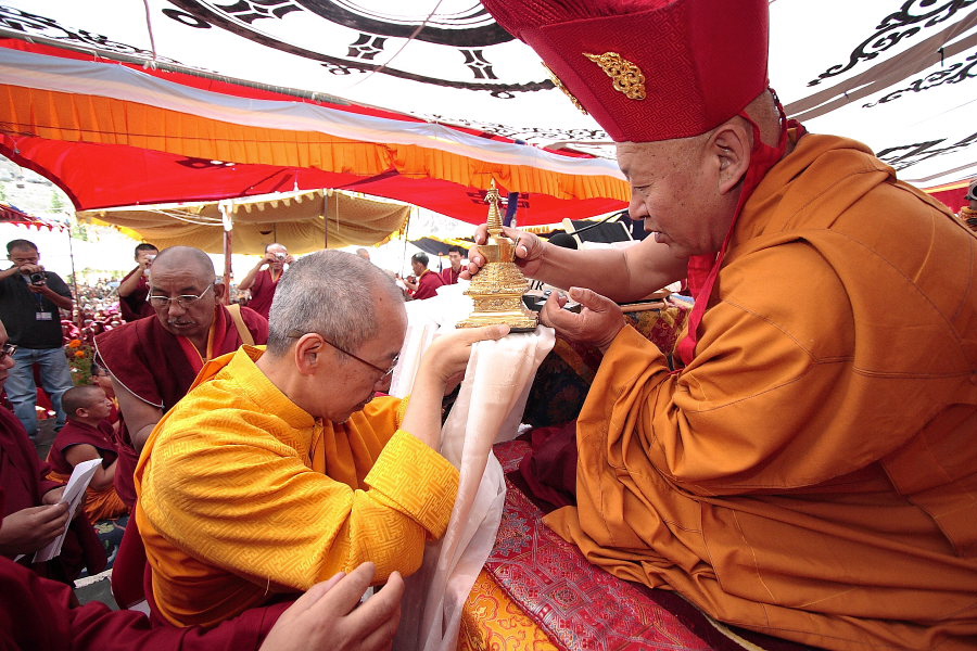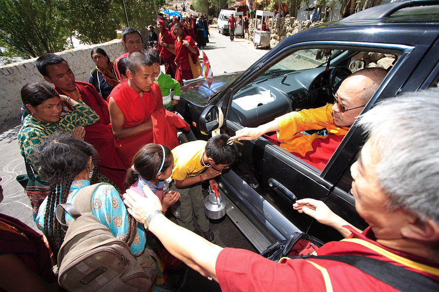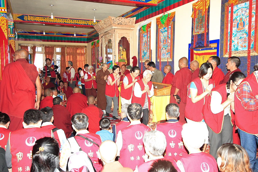 At invitation of Choeje Togden Rinpoche, the abbot of the Phyang Monastery, His Eminence Rinchen Dorjee Rinpoche led nearly 300 disciples to the occasion. During the teachings, Rinchen Dorjee Rinpoche always accompanied His Holiness closely and received a lot of privileges. Many believers of Drikung Kagyu flocked around Rinchen Dorjee Rinpoche requesting blessings. It was a once-a-lifetime opportunity for the believers to see a rinpoche in person, and they treasured it with utmost reverence.