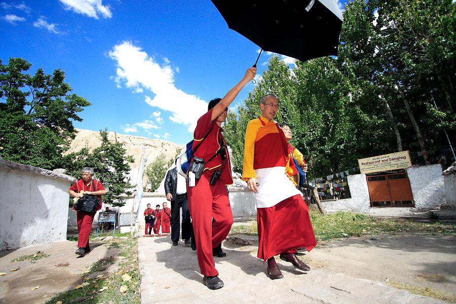 In addition, on the afternoon of the first day of the teachings, Rinchen Dorjee Rinpoche, along with his disciples, took a 3-hour round trip on the bumpy roads of Leh to pay homage to the holy place of Alchi. All of the accompanying disciples were amazed at the rare and unique causes.