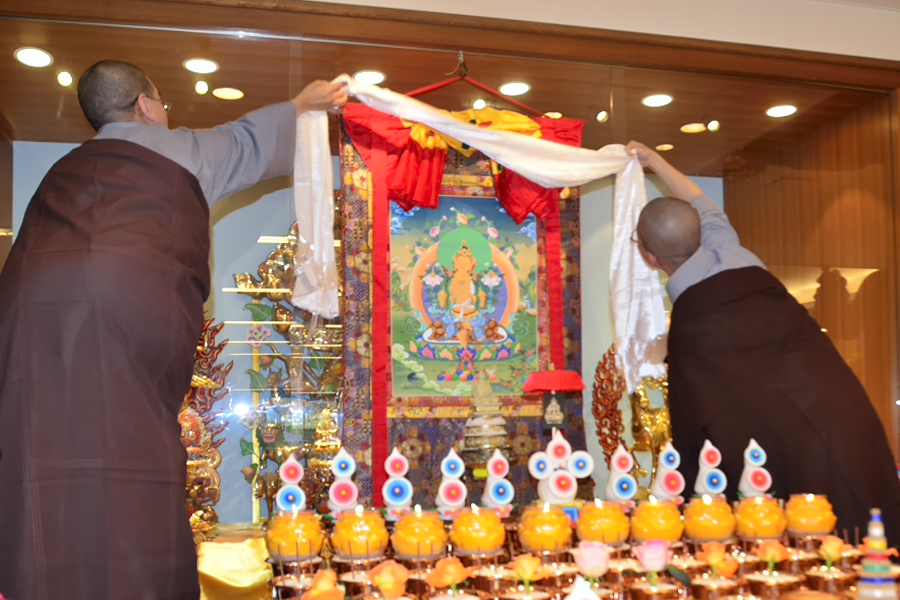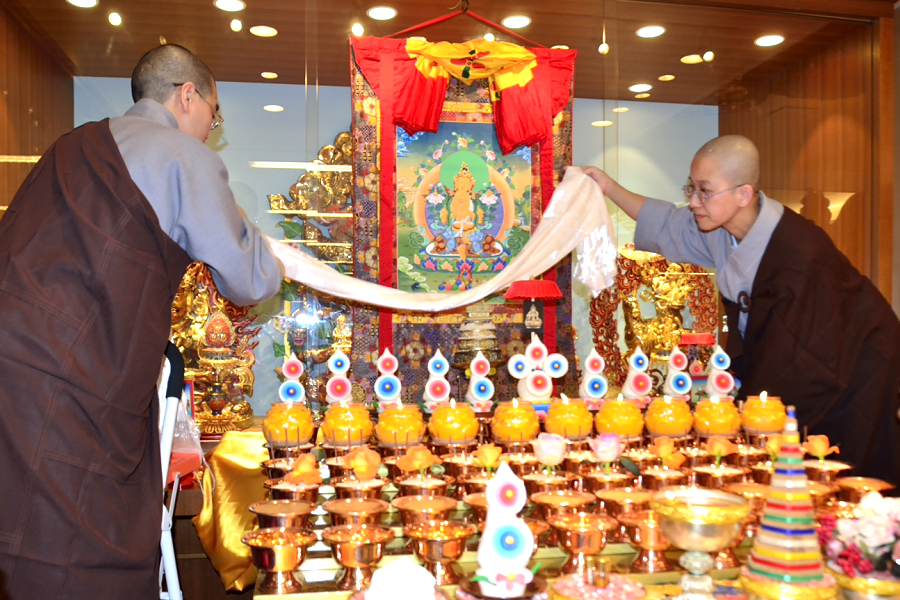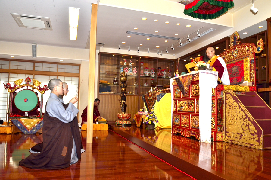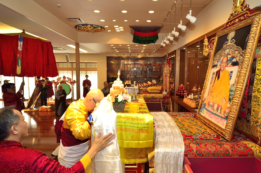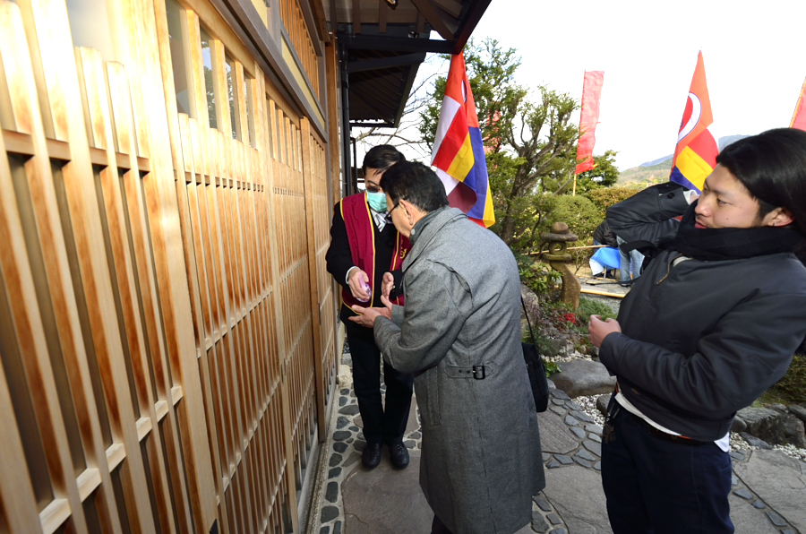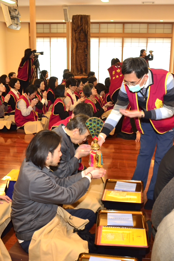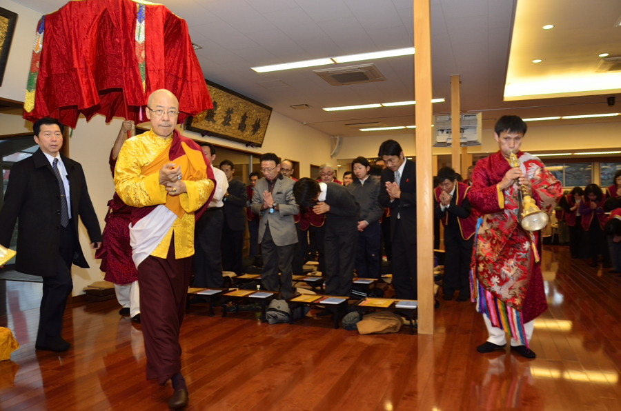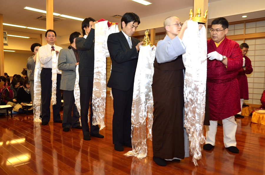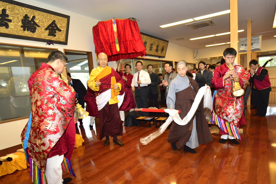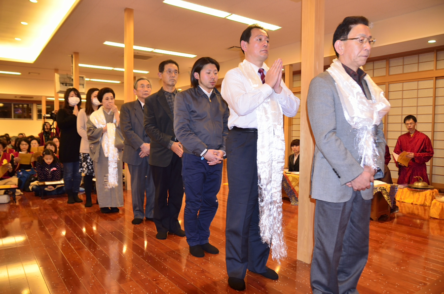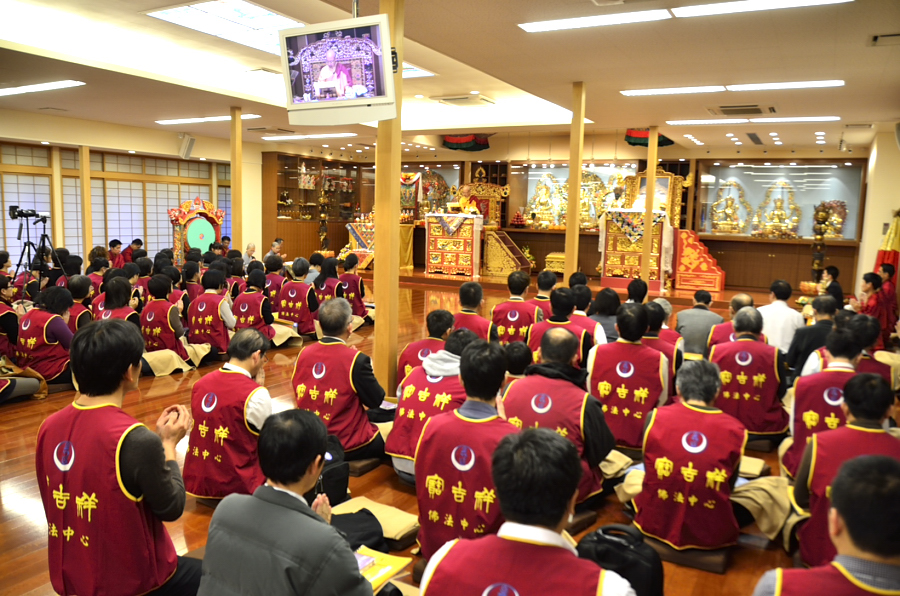 尊きリンチェンドルジェ・リンポチェは日本人が2011年日本東北大地震の津波を経歴した後、石造の地蔵菩薩を再度立て上がって、その上とても誠心に供養していることを見た。日本の者はとても大きな苦難と恐れを経て、地蔵菩薩への信心が消えてなくなっていないが、しかし彼らが如何に如法に供養することを知っていないため、リンチェンドルジェ・リンポチェは感動して悲しいと感じた。その故に、尊き金剛上師リンチェンドルジェ・リンポチェは2013年1月3日に日本京都寶吉祥仏法センターにて、殊勝な「地蔵菩薩祈福法会」を主催した。法会の参列者は日本地元の信者11人、台湾の信者8人、日本と台湾の弟子121人を含んで、合計で140人が今回極めて珍しくて得難い法会に参加した。法会が終わった後に、尊きリンチェンドルジェ・リンポチェはとても慈悲によく言いつけた。今年(2013年)は天気の変化がとても極端で、世事が良く変る年である。若し、今年皆さんは悪を作るのを止めて善行をして、慎重に事を進めば、多くの災難が発生することを免れることができるでしょう。皆さんも胃腸の疾病を注意して、特に肉や海鮮を食べる人は比較的に病気に罹りやすい。若し皆さんは風邪、胃腸など病に罹っているのであれば、春の前に治さなければならない。特に肺部に痰が有り、タバコを吸い、氷を食べる者は2013年に病気に罹る機会は比較的に高い。そして、皆さんはよい年があることを祝福した。