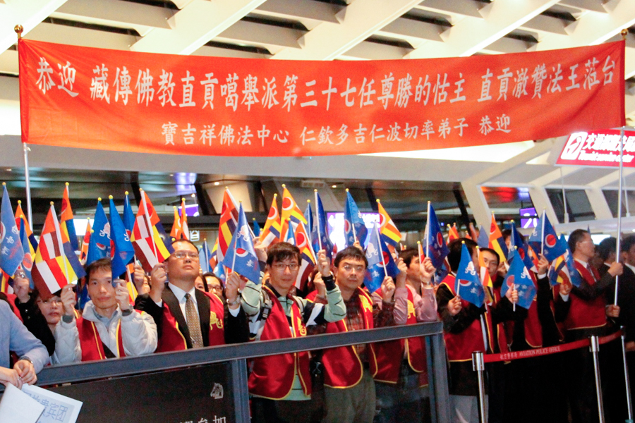 2013年11月21日直貢噶舉派尊勝なる怙主直貢チェツァン法王がにいらっしゃった。尊きリン尊きリンチェンドルジェ・リンポチェは自ら、寶吉祥仏法センターの弟子500人を率いて、空港に向かって、三恩根本上師尊勝なる直貢チェツァン法王を出迎えに行った。