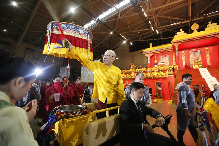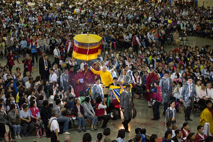 中秋節の前日、寶吉祥仏法センターの住持上師であられる尊きリンチェンドルジェ・リンポチェは、台北市南港展覽館で殊勝なる第十四回「阿弥陀仏無遮大超度法会」を主法なさった。参会者20,750人は、一切の有情衆生が離苦得楽できるよう祈願し、法会は荘厳盛大で参会者を感動させた。諸仏菩薩、祖師ジッテン・サムゴン、歷代伝承上師、尊勝なる直貢チェ・ツァン法王、尊勝なる直貢チョン・ツァン法王、アキ護法の加持庇護の下、法会は清浄かつ円満となった。