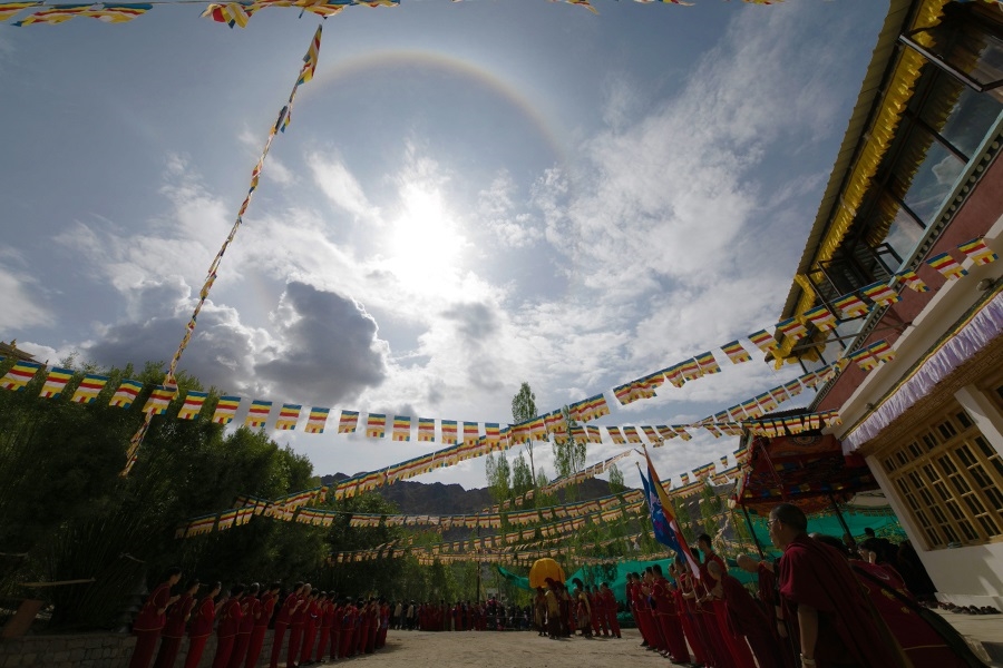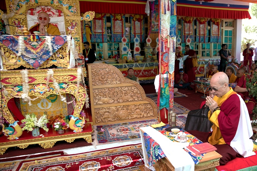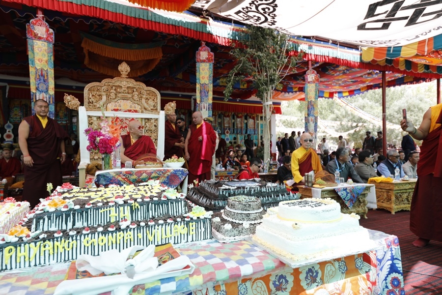 尊きリンチェンドルジェ・リンポチェは弟子を率いてインド・ラダックの平陽寺へ赴き、尊勝なる直貢チェ・ツァン法王が主法なさる法会に参加し、また法王の寿誕吉祥を謹んでお祝い申し上げた