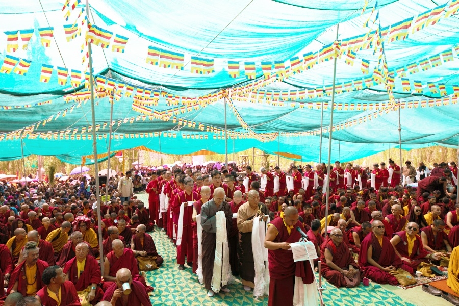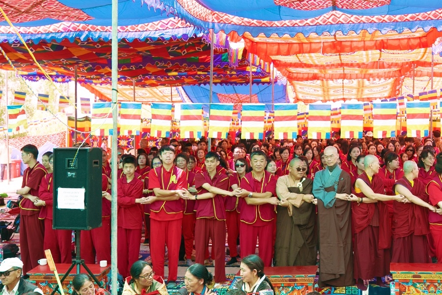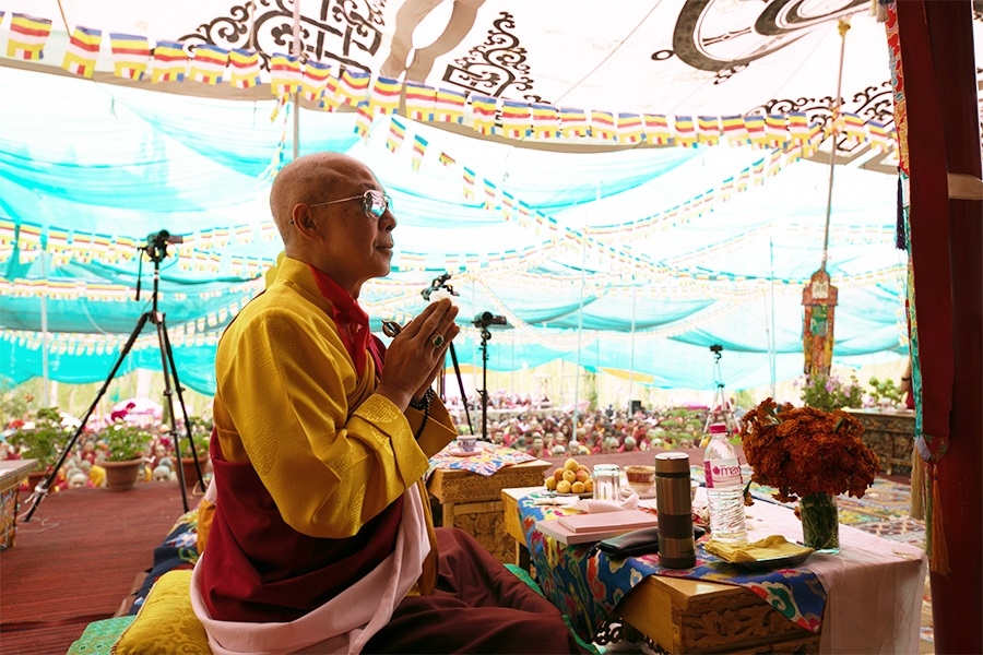 尊勝なる直貢チェ・ツァン法王の親諭の下、尊きリンチェンドルジェ・リンポチェは2019年7月30日、寶吉祥仏法センターの200名近い弟子を率い、北インド・ラダックの平陽寺へ赴き、尊勝なる直貢チェ・ツァン法王が御自ら主法くださる「菩提心戒教授」、「直貢大ポワ法」、「長寿仏灌頂法会」に参加し、法王の寿誕を謹んでお祝い申し上げ、すべては吉祥円満となった。