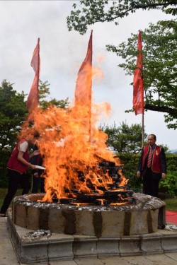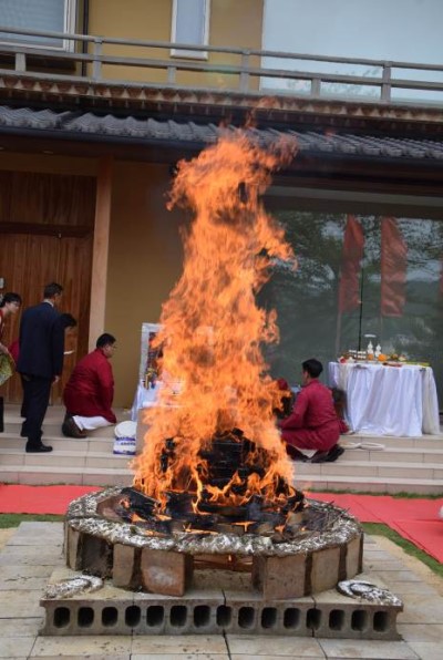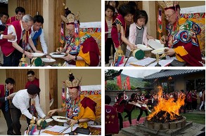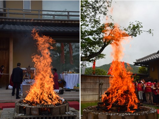 火供中供養的每種物質都有特別的意義,而且有特別的咒語。在藏傳佛教中,修火供的行者必須是仁波切。這也就是說,修火供的行者一定要經過一系列不斷地閉關。今天大家有因緣參加火供,是幫助大家種下未來親見佛的因緣。仁欽多吉仁波切知道有些日本信眾是抱著好奇心來參加這場法會,佛法不屬於特定的民族,也不屬於特定的國家,佛法是平等的。只要參加法會的人對佛與佛法有尊重的心,今天都會得到利益。