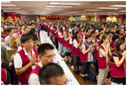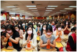 不要以為佛經上提到很多人往生前起大懺悔心,這種人少之又少,你們是沒辦法的,因為你們不夠苦。就如佛經所說的「富貴修道難」,臺灣不算最富貴,但至少臺灣現在沒戰爭,大家都安居樂業,所以你們都過得太幸福,人世間一些小事情就當是了不起的苦。所謂福德因緣的定義,是為了所有一切有關係與沒關係的眾生都能解脫生死,這是佛的願。你們現在參加法會,如果有這個願,才能跟佛菩薩的願結合在一起。