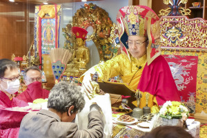 法本有提到,我們對修法的上師與諸佛菩薩,要恭敬頂禮,要恭敬地藏王菩薩。但是能如此恭敬、真誠,不求回報的這種人很少。雖然如此,地藏王菩薩仍然是用無差別的平等心來對所有眾生,幫助眾生離開苦海。有很多文字上的佛法傳授,但是最重要的是信心。一是要相信佛所說的一切眾生都具備成佛的條件,很多世之後,有一天一定會跟佛一樣的成佛,二是要對法有信心,因為法是釋迦牟尼佛傳下來的。對眾生有幫助的動作,才是佛法,三是要對上師有信心,因為上師是無所求的弘揚佛法。一個修法上師要很清淨,沒有對參加的信眾有所要求。而且一個修法上師是要經過很多過程才修出來的,還要得到他的上師的確認。只要你們有信心,今天所修的法一定能幫助你們。佛法的幫助不是馬上讓你們感覺到,但是你們可以慢慢地體會到人生的改變,煩惱與痛苦在減少。學佛最重要的就是要有信心與恭敬心。法本中的一切儀軌,都是為了眾生,而不是為了佛。例如燃香、點燈是為了培養我們的恭敬心。