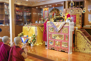 尊貴的 仁欽多吉仁波切於2015年12月19、20兩日在日本京都寶吉祥佛法中心,主法殊勝的「地藏王菩薩法會」,帶領與會大眾持誦地藏王菩薩心咒,並詳細開解《地藏菩薩本願經》的真實義。此次與會者包括來自日本、中國大陸、臺灣的弟子及信眾,共計215人,法會殊勝圓滿。