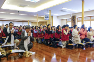 法會圓滿,弟子們齊聲感恩尊貴的金剛上師 仁欽多吉仁波切不辭辛勞慈悲修法與開示,起立恭送尊貴的金剛上師 仁欽多吉仁波切下法座。尊貴的 仁欽多吉仁波切在日本京都寶吉祥佛法中心主持殊勝法會,親自開解《地藏菩薩本願經》。