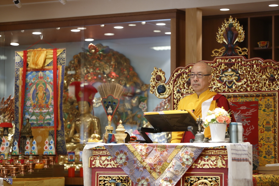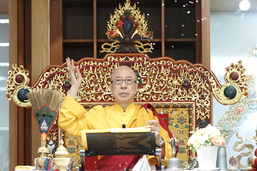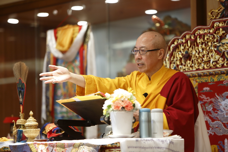 仁欽多吉仁波切修法圓滿後,繼續開示《地藏菩薩本願經》「閻羅王眾讚歎品第八」及「稱佛名號品第九」。