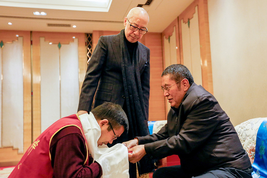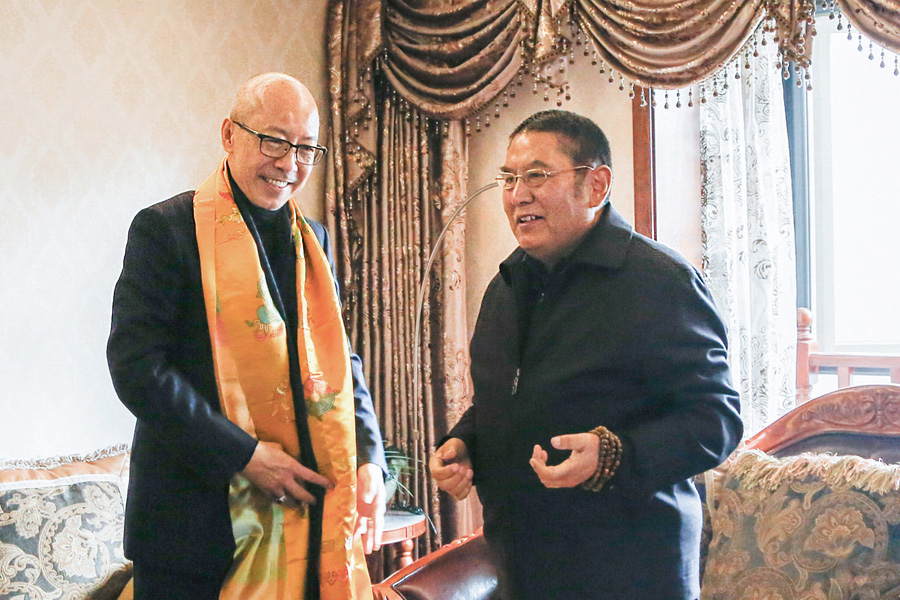 11月10日上午,尊貴的 仁欽多吉仁波切拜見尊勝的 直貢瓊贊法王,仁欽多吉仁波切得悉 直貢瓊贊法王有意重修直貢噶舉的陽日噶寺院之後,立刻供養人民幣一百萬元護持修建。此外,法王為便於接見教派弟子、信眾,將移居四川,仁欽多吉仁波切祈請能供養住所,法王表示住所已有安排,仁欽多吉仁波切隨即祈請供養屋內的裝潢以及全部的家具。