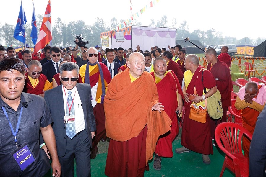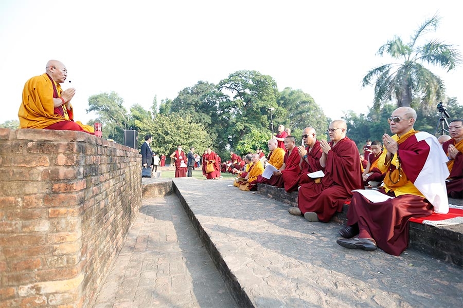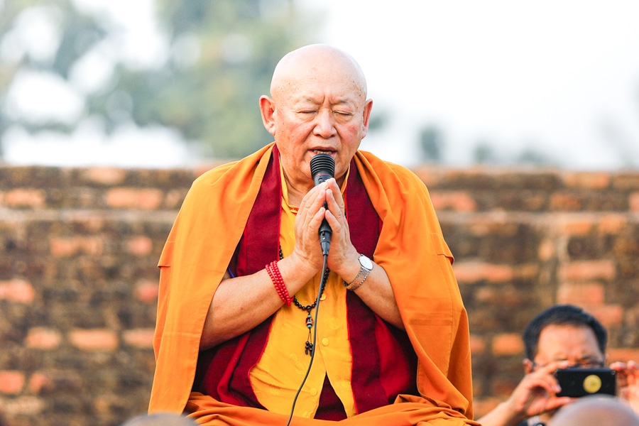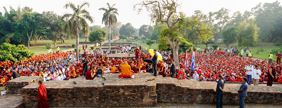 2017年11月7日至11月12日,仁欽多吉仁波切應 直貢澈贊法王的囑咐,帶領535位寶吉祥弟子前往印度舍衛城朝聖。除恭敬聆聽 法王的開示外,亦隨二位大修行者在佛陀說法的祇樹給孤獨園舉行燈供祈願,意義非凡,至心感恩。6天行程殊勝圓滿。