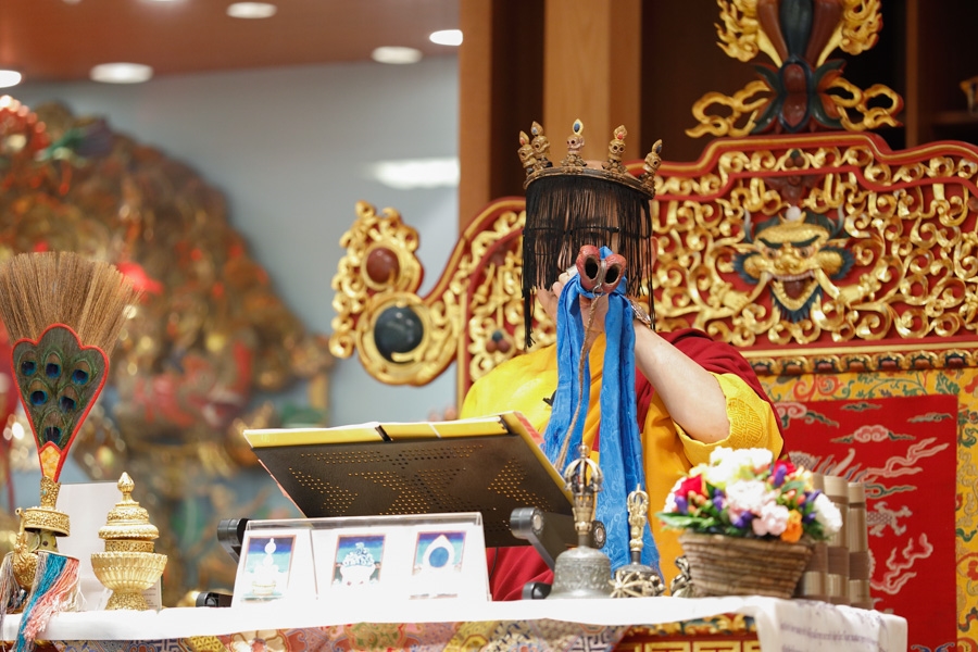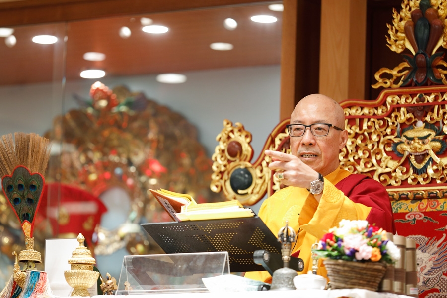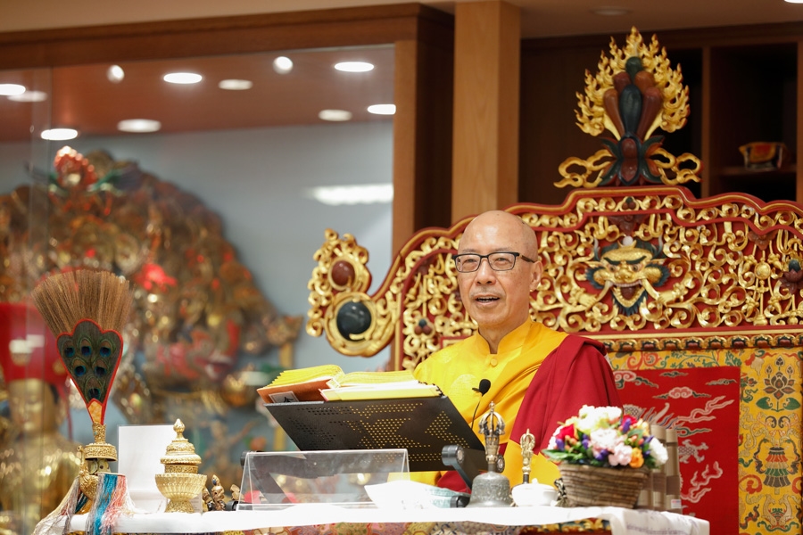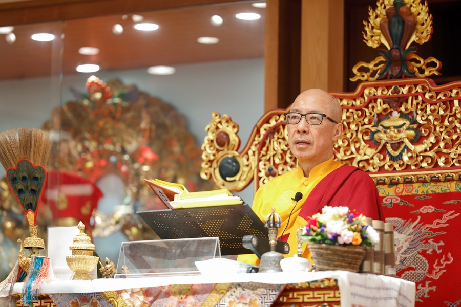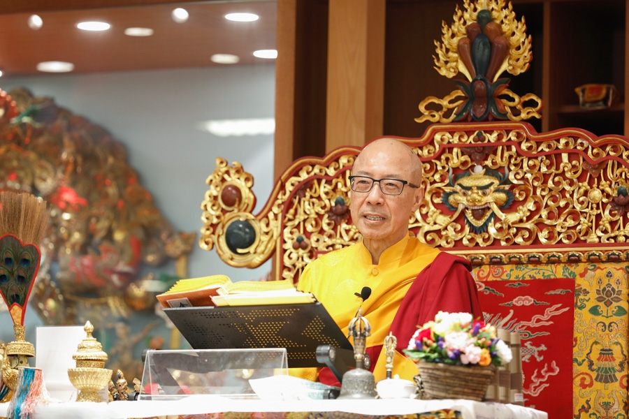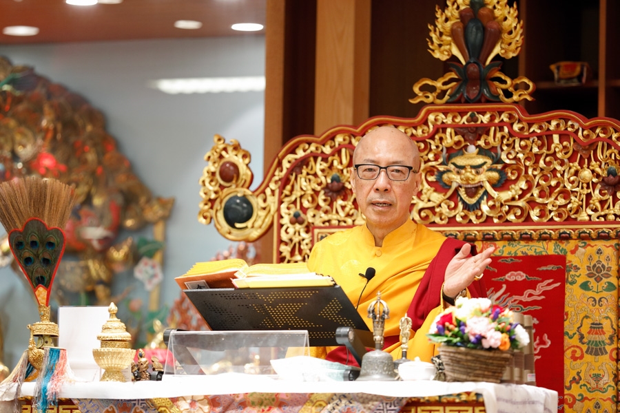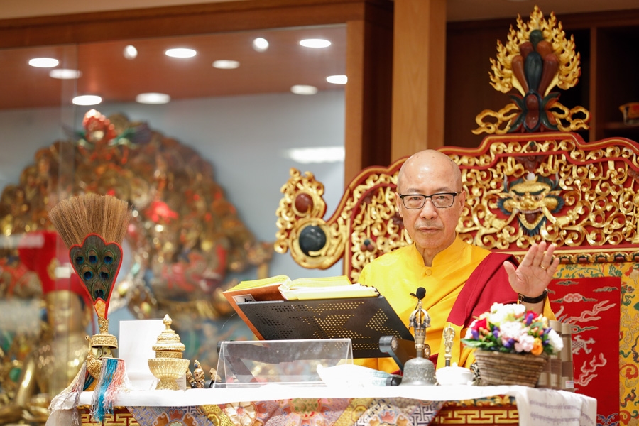 下午1點55分,仁欽多吉仁波切升法座,修施身法。修法前,仁波切賜予開示︰