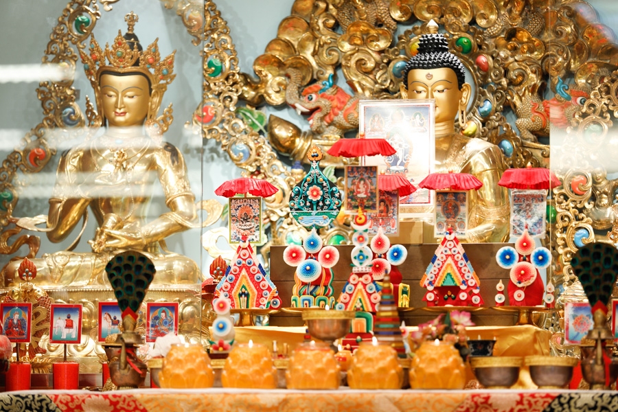 上午9點30分,尊貴的 仁欽多吉仁波切在樂聲、薰香及寶傘前導、大眾合十恭迎下,步上壇城。恭敬頂禮諸佛菩薩,並向尊勝的 直貢澈贊法王法座敬獻哈達,燃燈供佛後升法座。