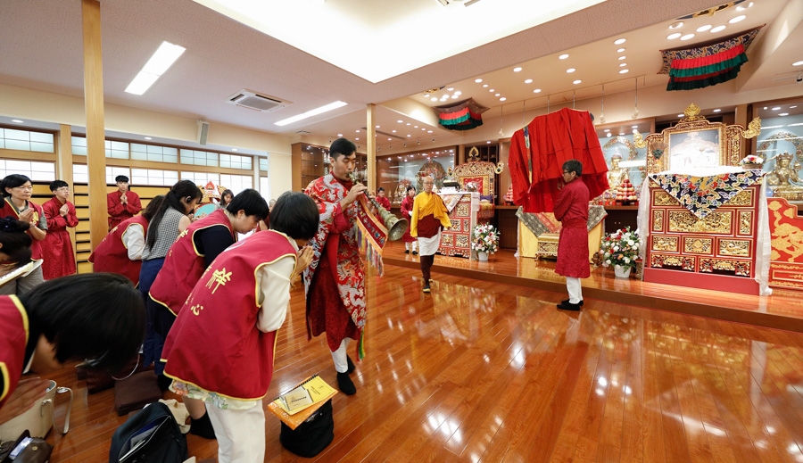 來日本舉辦法會之前,我去北印度。因為是 法王的生日,我帶了200位弟子去北印度的拉達克8天。那邊的海拔3千多公尺,氧氣稀薄沒有樹。我很多弟子都有高山反應,我就沒有。8天後回到臺灣,休息兩天,我接著閉關兩天。因為8月11日有2萬多人的「阿彌陀佛無遮大超度法會」。大法會結束後我就過來日本,為了每一年8月16日在日本都會舉辦的法會。這表示什麼呢?沒有好處的事。