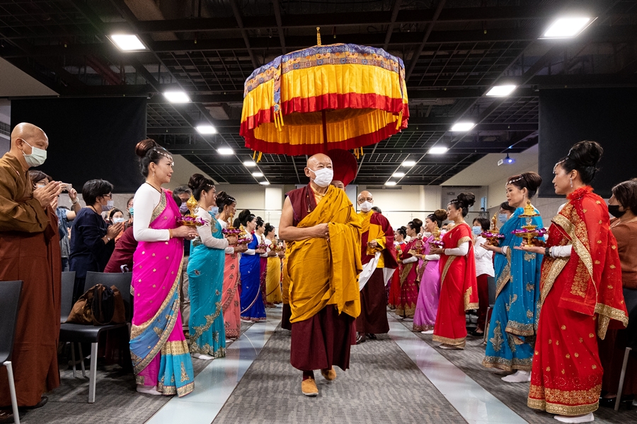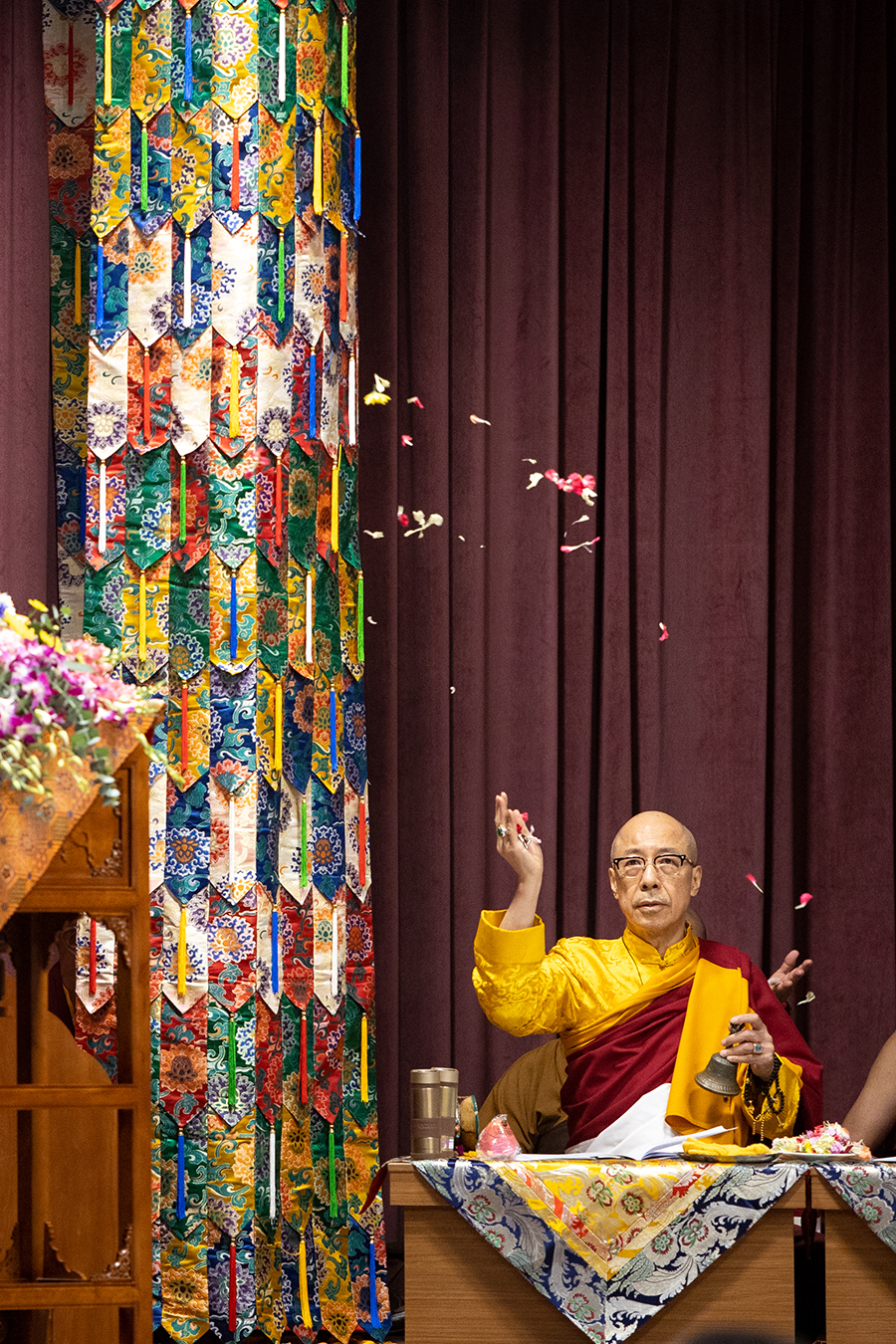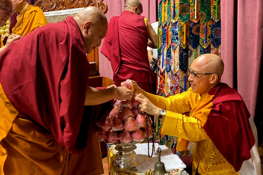 法王與 仁波切以花瓣灑向虛空,供養十方諸佛