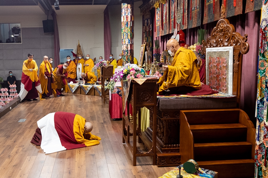 2020年11月7日,尊勝的 直貢澈贊法王主法「帕摩竹巴涅槃紀念法會」。仁欽多吉仁波切奉 法王指示帶領出家弟子及有傳到「上師相應法」的弟子共同參與殊勝法會。