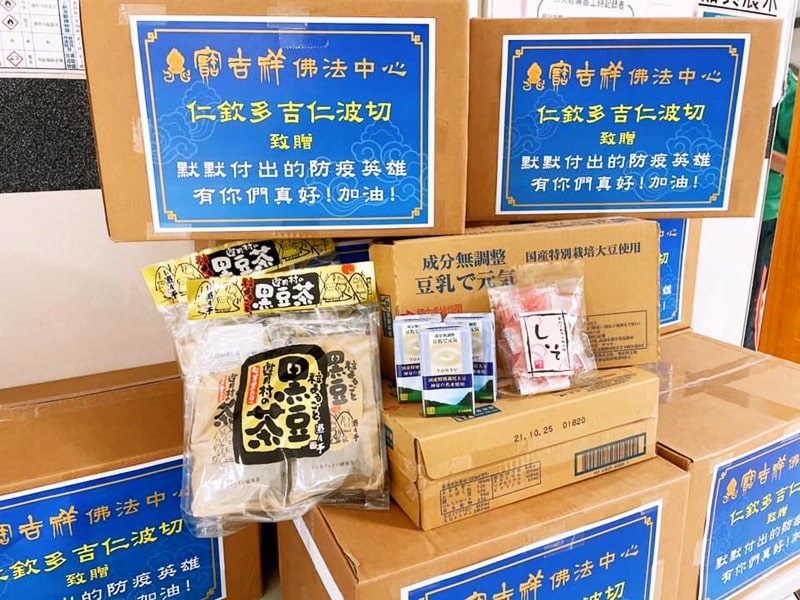 近期國內新冠肺炎疫情嚴峻,尊貴的 仁欽多吉仁波切有感於第一線的醫師、護理人員、警消人員辛勤堅守崗位、幫助民眾積極防疫,同時還需承受自己及家人染疫的風險,身心倍受壓力,因此主動致贈上千箱日本進口的豆漿及蔬食營養品等物資予12家醫療院所及4處警消單位,以實際行動表達關懷感謝之意,並給予溫暖的鼓勵與支持。