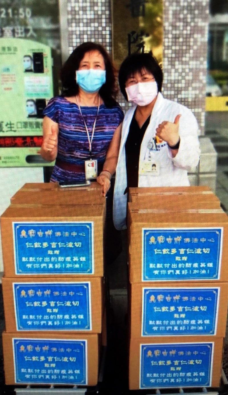 尊貴的 仁欽多吉仁波切致贈物資給默默付出的防疫英雄,以實際溫暖的行動,慰勞前線防疫人員。