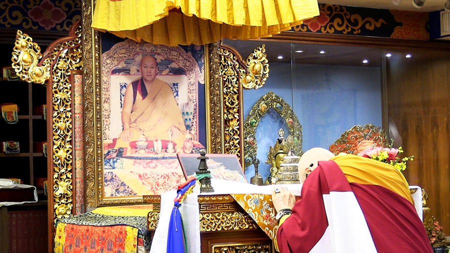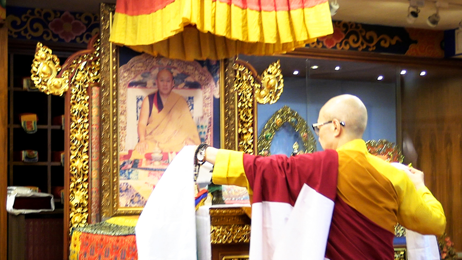 仁波切恭敬地向 法王法座獻曼達供養