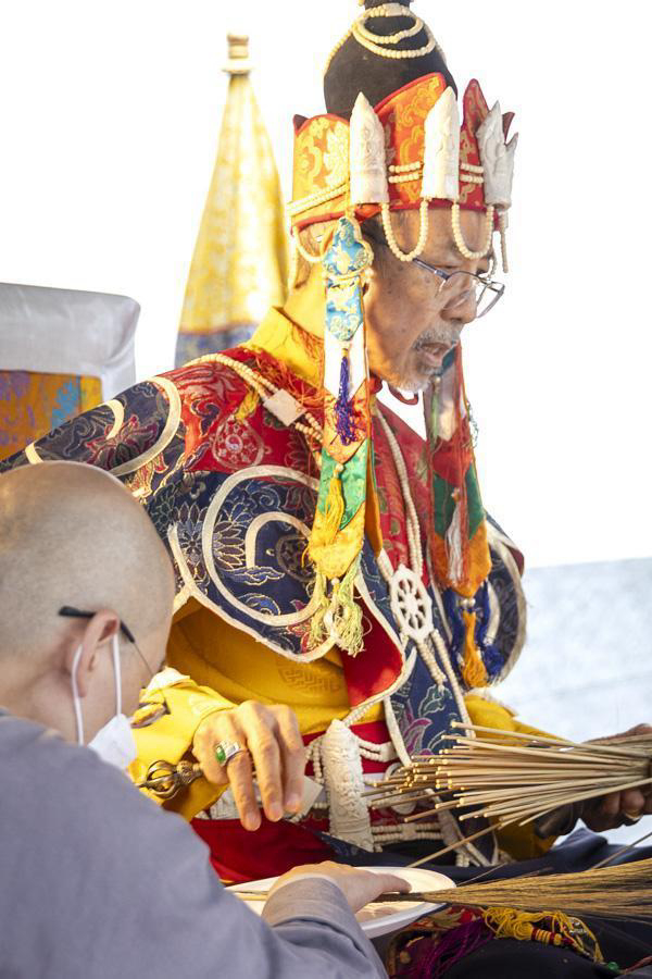 早在2020年寶吉祥佛寺興建期間,仁波切為使工程順利成就,在短短六週內,陸續圓滿了息、增、懷、誅四個火供,加持這片土地與眾生。仁波切曾開示:火供是實現一切世間、出世間的善願最快速的方法,功德無量無邊。仁波切不顧自身辛勞,身著綴滿骨飾的法衣與法帽,在空性的慈悲中入定修法,面容現忿怒尊相,殊勝至極,加持利益無邊無際的眾生。仁波切的大慈悲與大威德力感動天地,攝受一切有情!火供修法圓滿,殊勝吉祥。