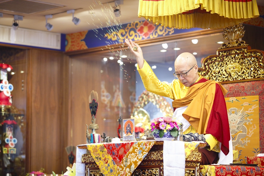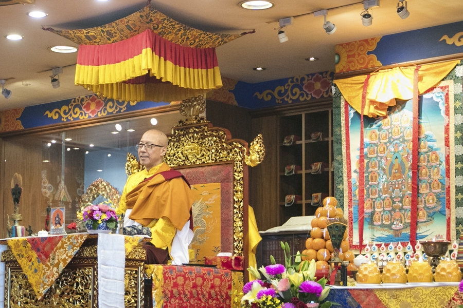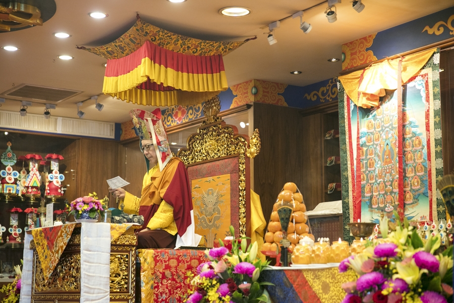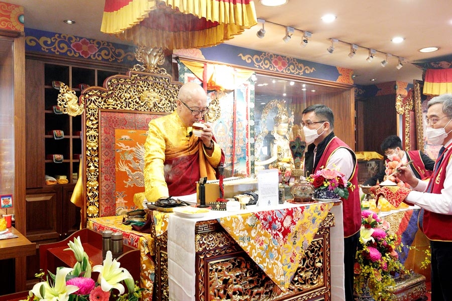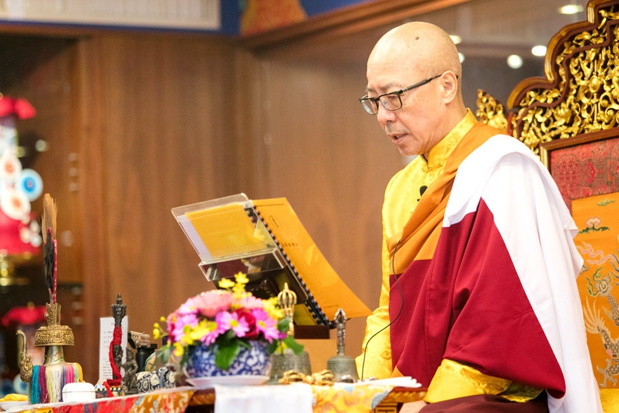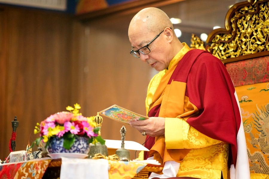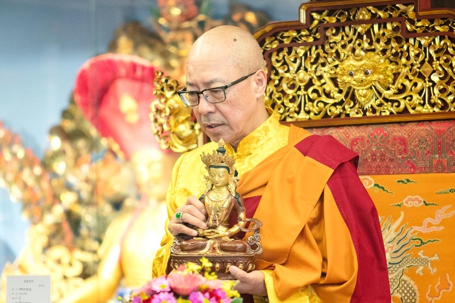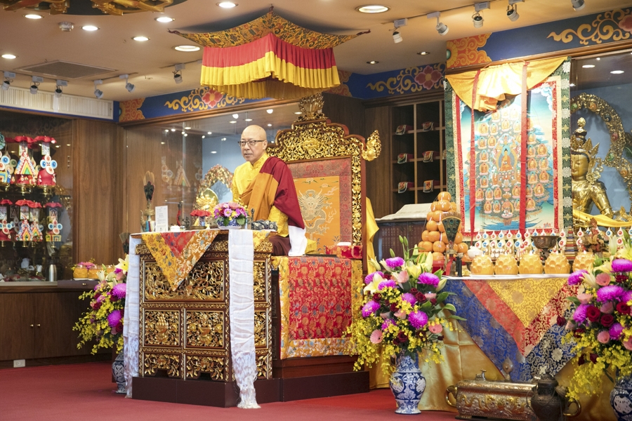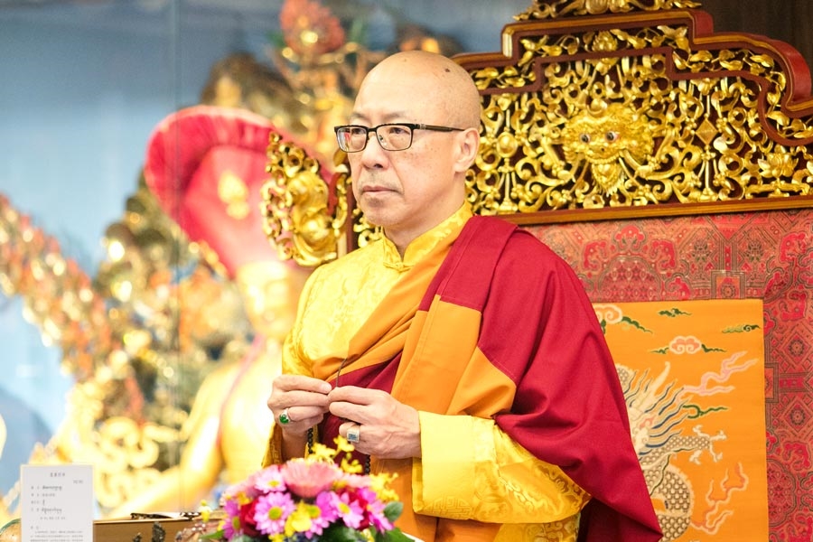農曆大年初二上午9點30分,尊貴的 仁欽多吉仁波切親自主持《三十五佛懺》、黑水財神法會,於升座前燃燈供佛並賜予與會大眾珍貴的佛法開示。