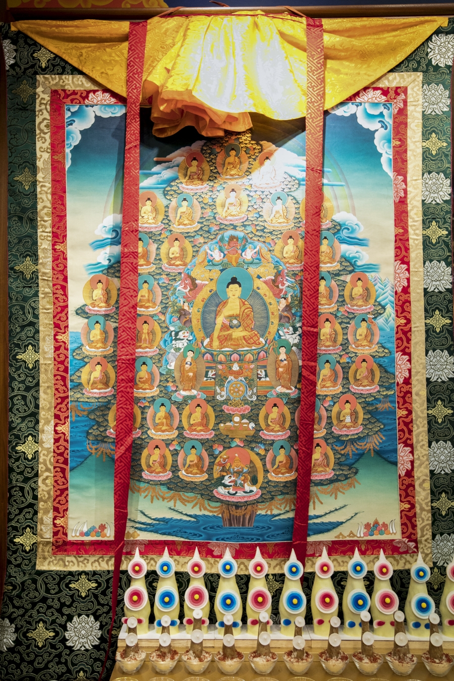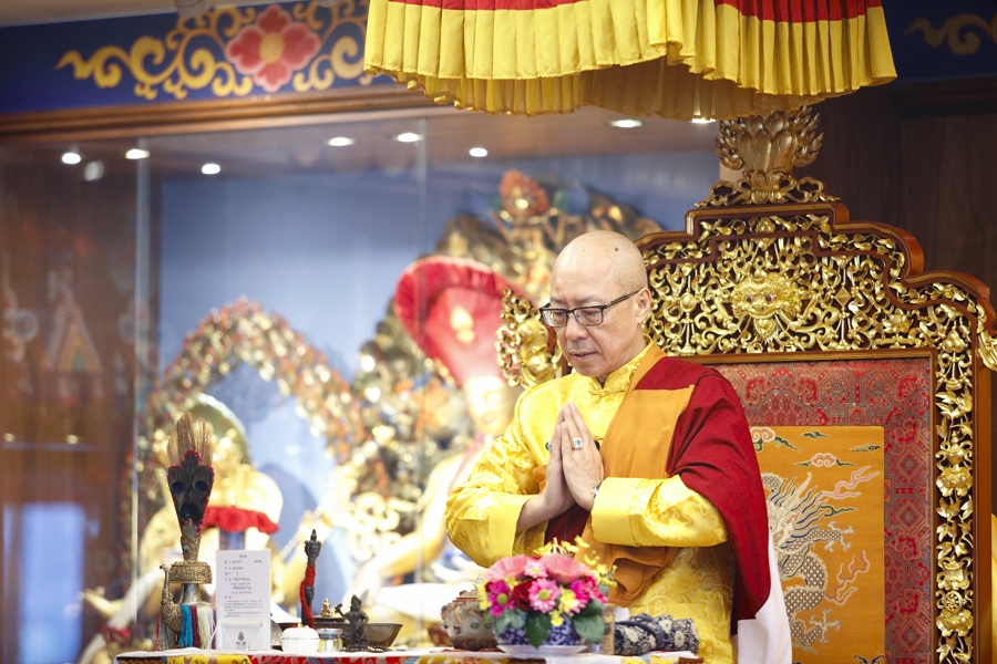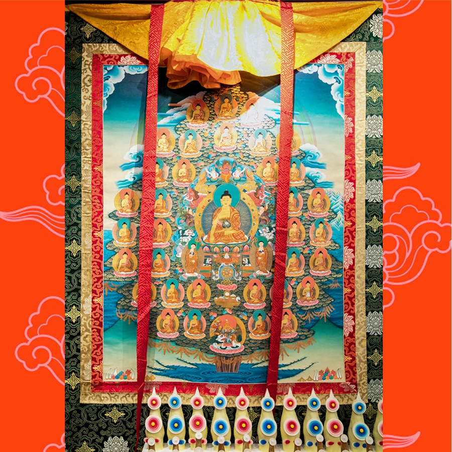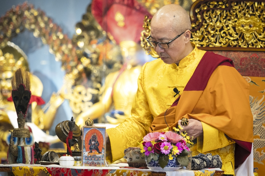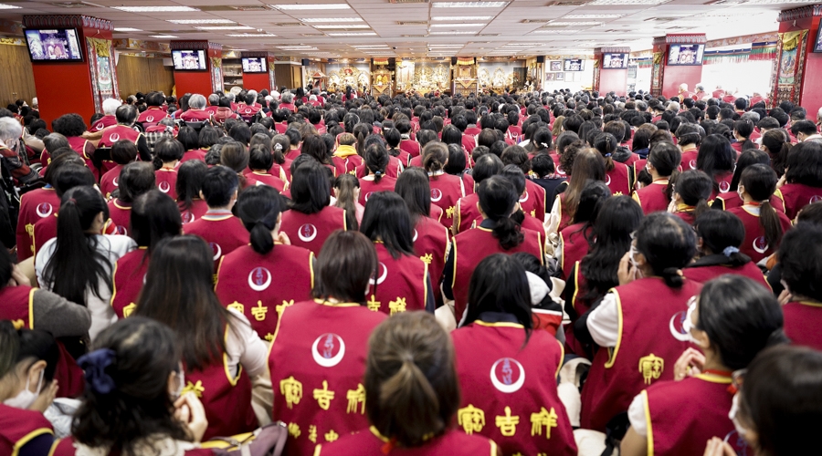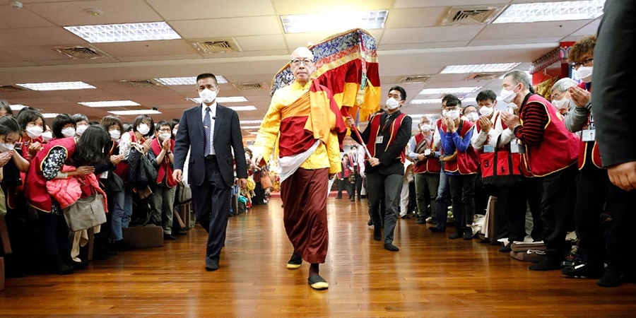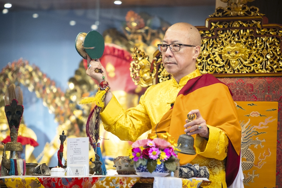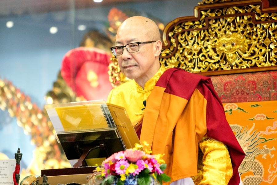 農曆大年初二上午9點30分,尊貴的 仁欽多吉仁波切親自主持《三十五佛懺》、黑水財神法會,於升座前燃燈供佛並賜予與會大眾珍貴的佛法開示。