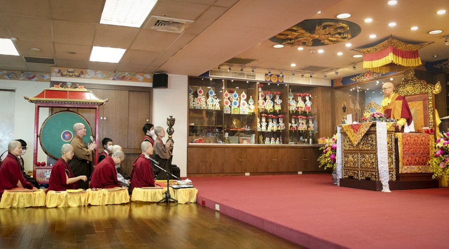 上午的《三十五佛懺》與黑水財神法會圓滿,弟子們齊聲感恩尊貴的 仁欽多吉仁波切修法與開示,起立恭送尊貴的 仁欽多吉仁波切下法座。