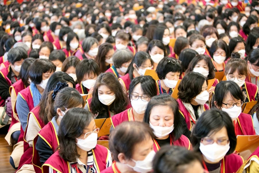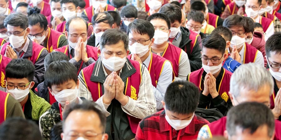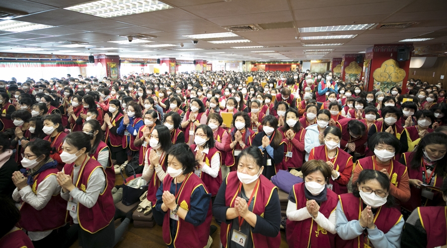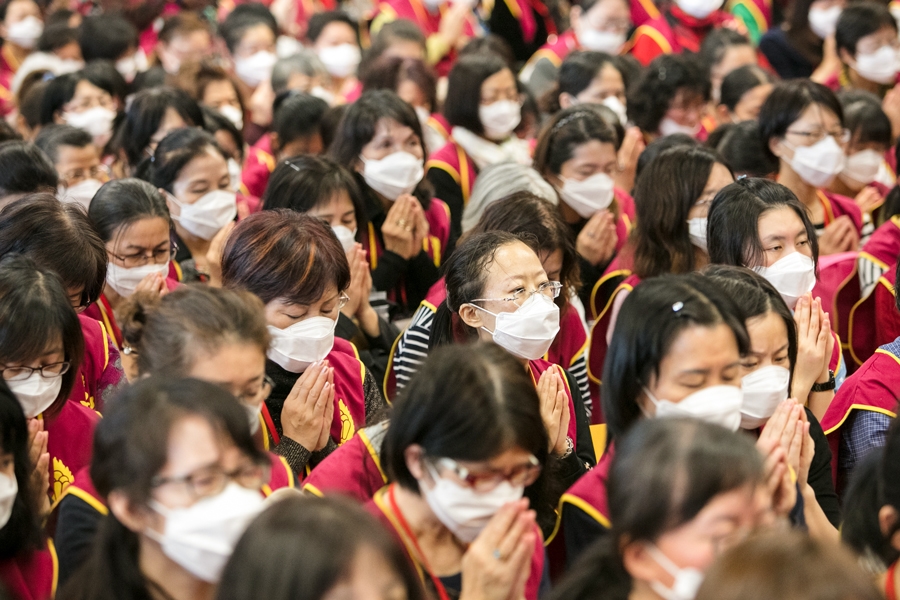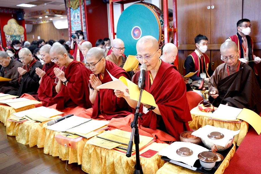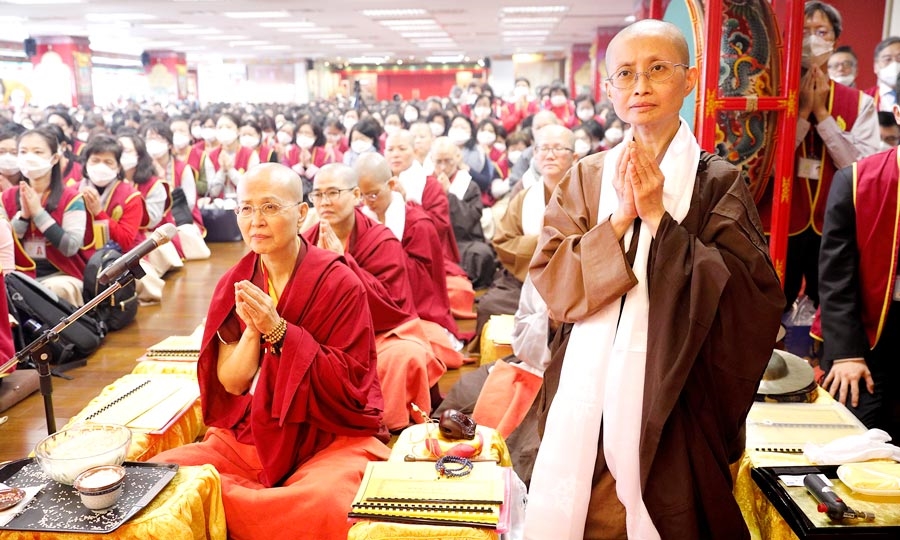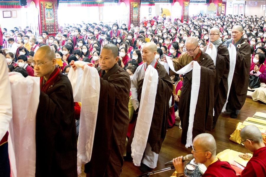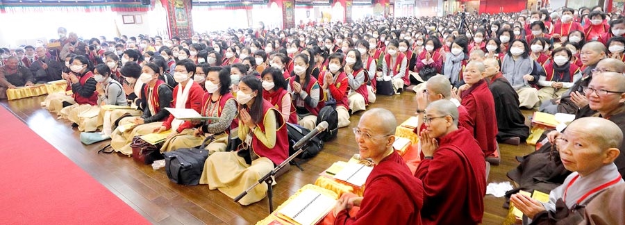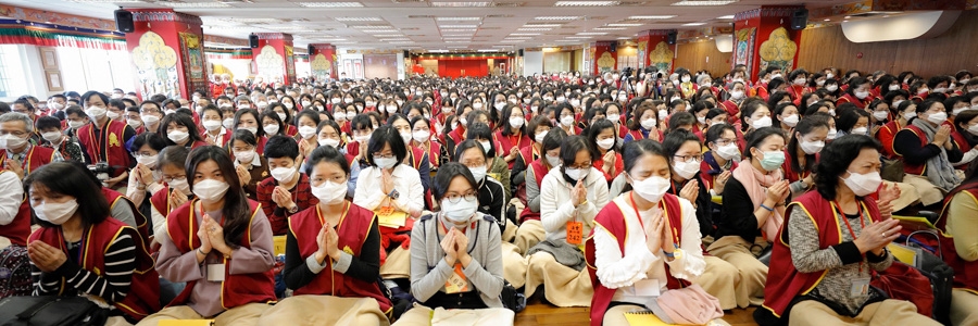 法會圓滿,與會大眾齊聲感恩尊貴的 仁欽多吉仁波切殊勝修法與開示,祝賀 仁波切新年快樂,起立恭送 仁波切步下法座。與會大眾感恩尊貴的 仁欽多吉仁波切於新年伊始不辭辛勞修持殊勝的上師供養法、黑水財神及大象財神並帶領與會大眾拜《三十五佛懺》、念誦《百遍頂禮證知》,諄諄教導珍貴的佛法。弟子眾等當恪遵上師教導,恆常頂戴上師寶,如法奉行菩薩道,如實精修《佛子行三十七頌》。祈願上師法體勝妙康、法輪常轉、佛法事業興盛、利樂一切有情!