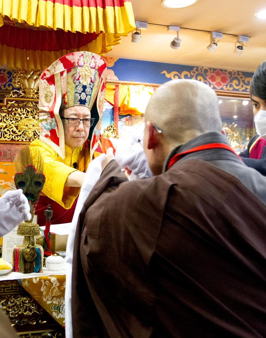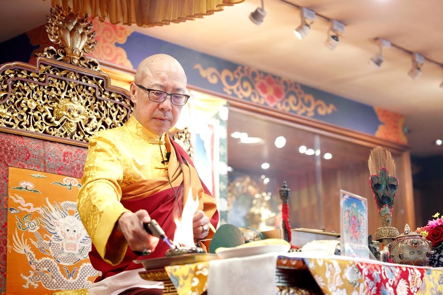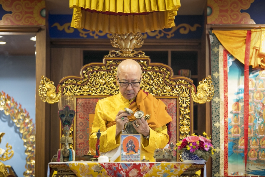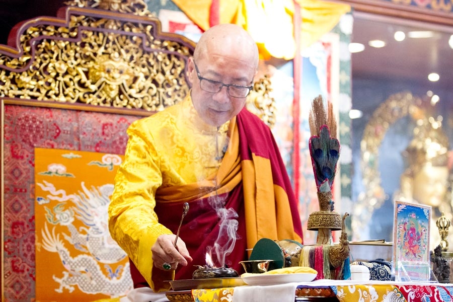 譬如剛剛他們給我吃的是西藏人在過年時,上師修完法要享用的東西,事先都沒有告訴我,突然給我驚喜。仁波切不是一定對儀軌、儀式很清楚,因為我不是從小學出來的,如果是,對這些就會很清楚。我是從實修證果的仁波切,法的方面需要我,我們道場有一位堪布在雲南,所以儀軌和儀式這方面就由堪布負責訓練我的弟子。