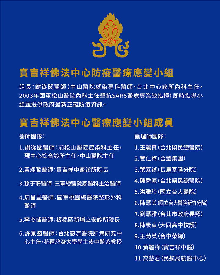 根據內政部12月1日公告,民眾進入宗教場所應佩戴口罩;故本中心再次重申,凡進入道場者需戴口罩、測體溫、酒精噴手消毒並採實聯制登記,敬請配合相關防疫措施。