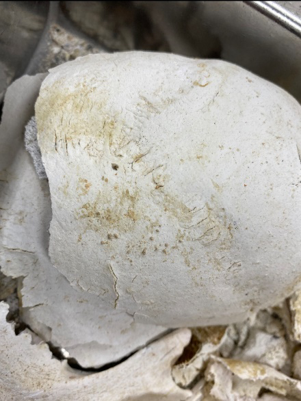當天火化後,母親頭蓋骨部位有一小圓孔,是 仁波切超度後的瑞相。