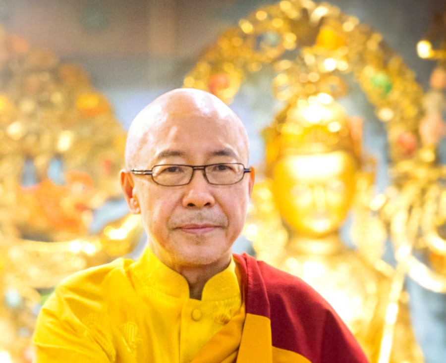 陳梅青(中間)全家皆已皈依尊貴的金剛上師 仁欽多吉仁波切座下學佛。