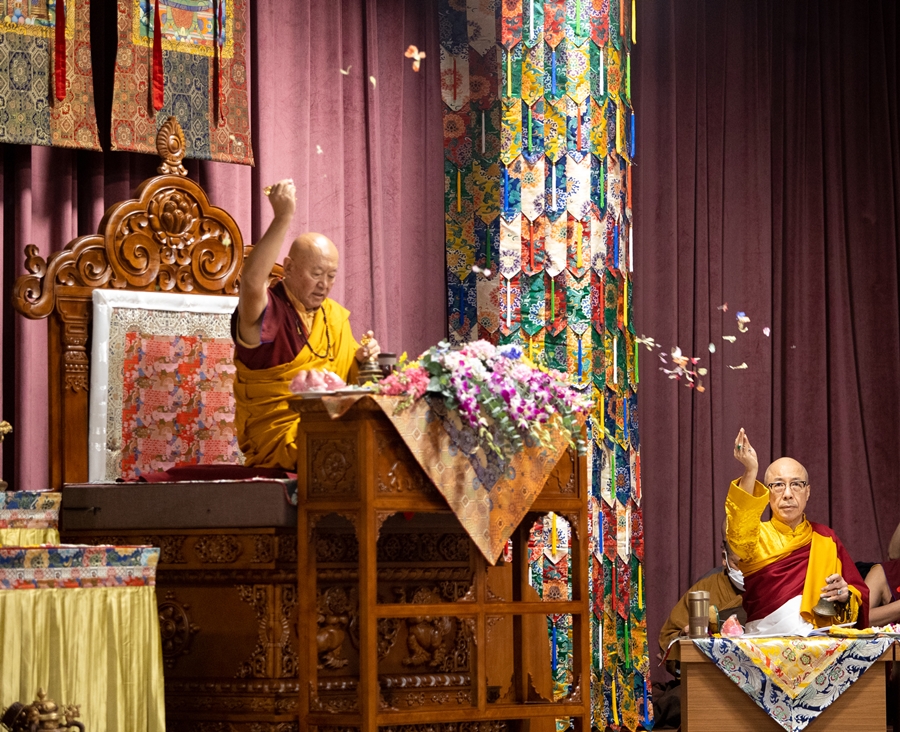 澈贊法王修持帕摩竹巴的「上師相應法」,並為 瓊贊法王賀壽。澈贊法王與 仁欽多吉仁波切以花瓣灑向虛空,供養十方諸佛。